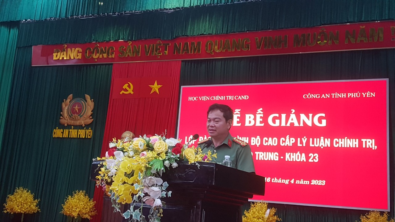 Phát biểu tại buổi lễ, đồng chí Đại tá Phan Thanh Tám, Ủy viên Ban Thường vụ tỉnh ủy, Bí thư Đảng ủy, Giám đốc Công an tỉnh Phú Yên khẳng định thành công của lớp học. Đồng chí cảm ơn và hi vọng rằng trong thời gian tới, Học viện Chính trị CAND tiếp tục phối hợp và giúp đỡ Công an tỉnh Phú Yên trong công tác tổ chức đào tạo, bồi dưỡng cán bộ chiến sỹ theo yêu cầu chuẩn hóa tiêu chuẩn cán bộ theo quy định của Đảng, Nhà nước và lực lượng CAND, đáp ứng nhiệm vụ bảo vệ an ninh trật tự trong tình hình mới. Đồng chí Giám đốc Công an tỉnh đã biểu dương kết quả học tập của các học viên và yêu cầu ngay sau khi trở về đơn vị công tác, các học viên tiếp tục không ngừng trau dồi bản lĩnh chính trị, vận dụng tốt các kiến thức đã học vào nhiệm vụ thực tế công tác.