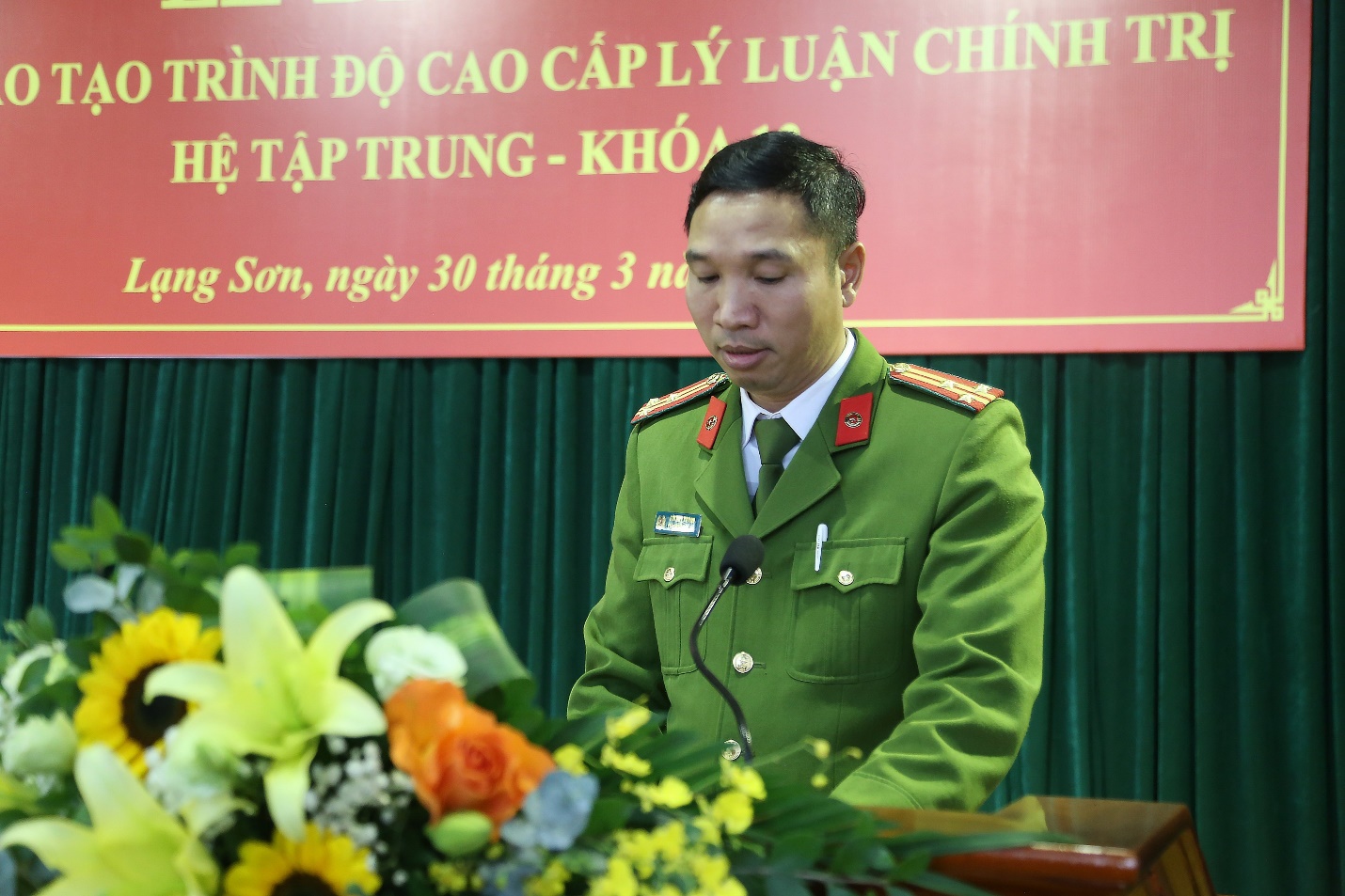 Thay mặt các học viên của khóa học, đồng chí Thượng tá Bùi Huy Khánh đại diện học viên lớp học phát biểu trân trọng bày tỏ lòng biết ơn đến Đảng ủy, Ban Giám đốc Học viện Chính trị Công an nhân dân; Đảng ủy, Ban Giám Đốc Công an tỉnh Lạng Sơn, lãnh đạo các đơn vị chức năng của Học viện và Công an tỉnh Lạng Sơn, các thầy, cô giáo đã tận tình, trách nhiệm, tạo điều kiện tốt nhất để học viên hoàn thành nhiệm vụ học tập, rèn luyện; đồng thời, xin hứa không ngừng học tập, rèn luyện, vận dụng hiệu quả kiến thức đã được học vào quá trình công tác chiến đấu, góp phần hoàn thành xuất sắc nhiệm vụ được giao.