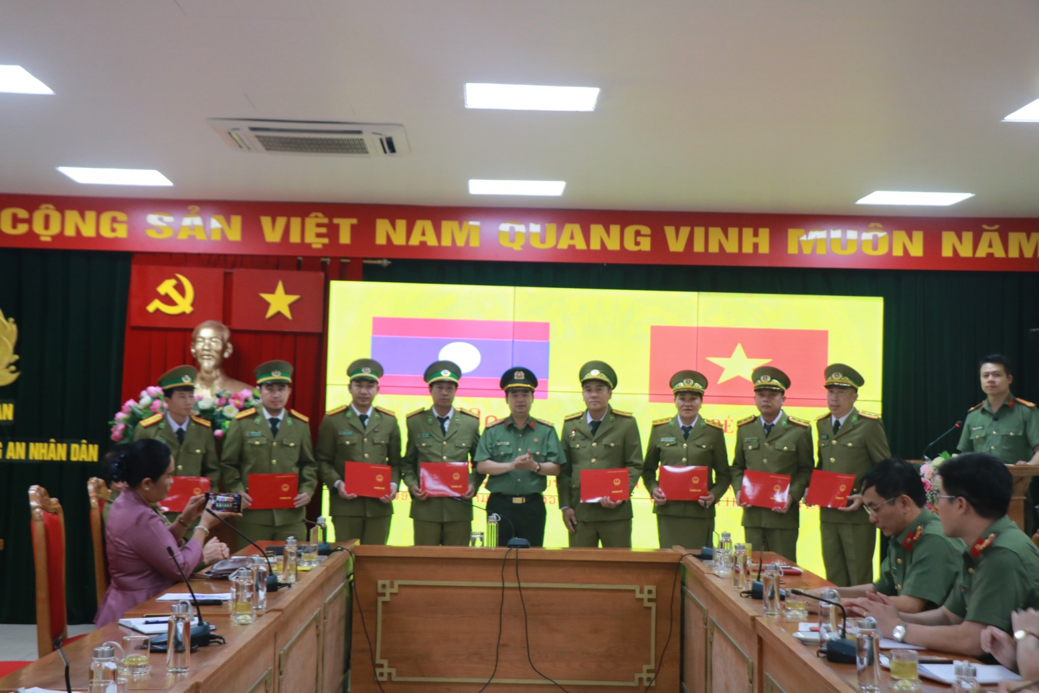 Tham dự buổi lễ có Đại tá Khon-sỉ Nao-va-lạt, Trưởng Cơ quan đại diện Bộ Công an Lào tại Việt Nam và Phu nhân, đại diện Cục Đối ngoại, Bộ Công an, đại diện lãnh đạo các đơn vị thuộc Học viện và toàn thể học viên lớp học.