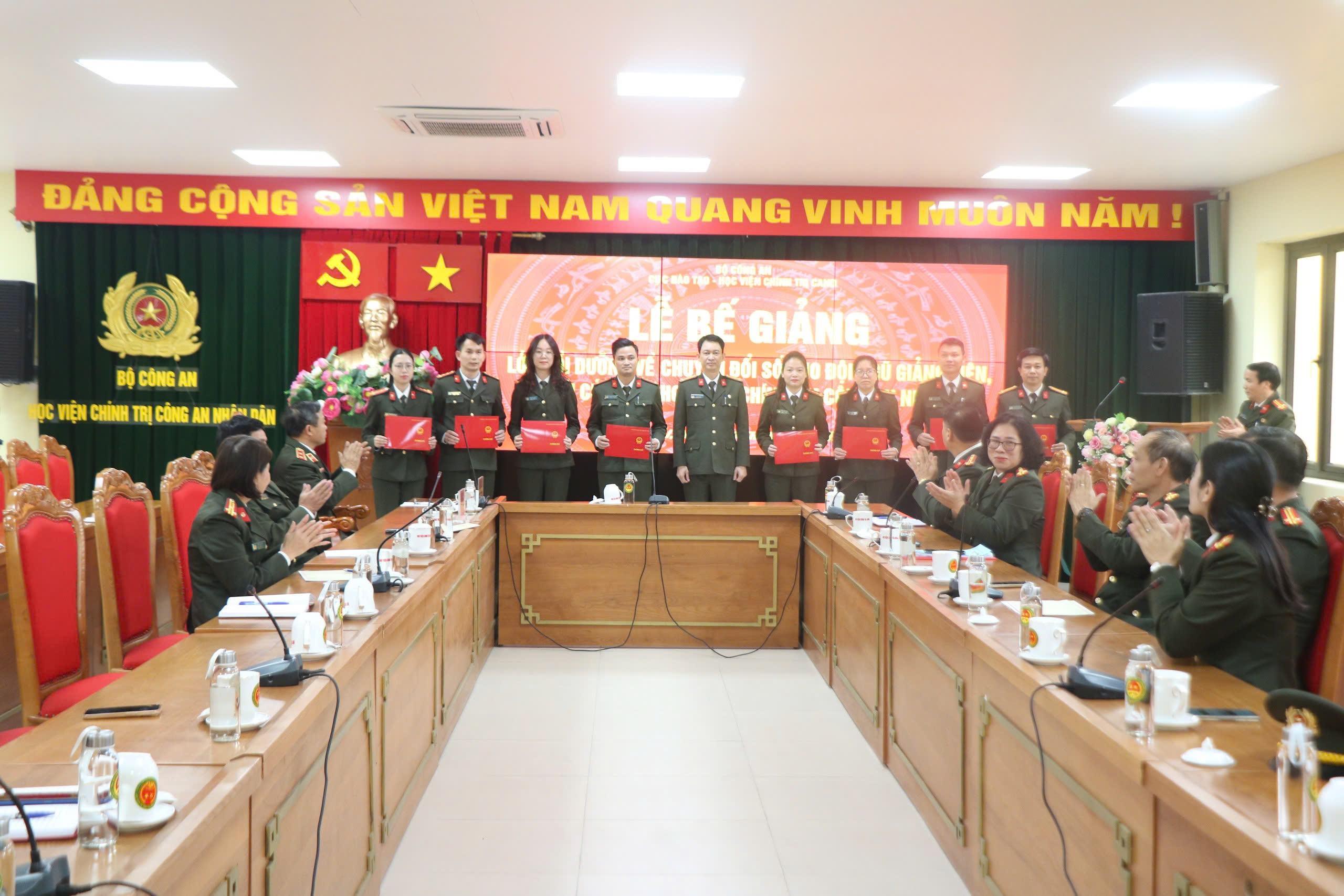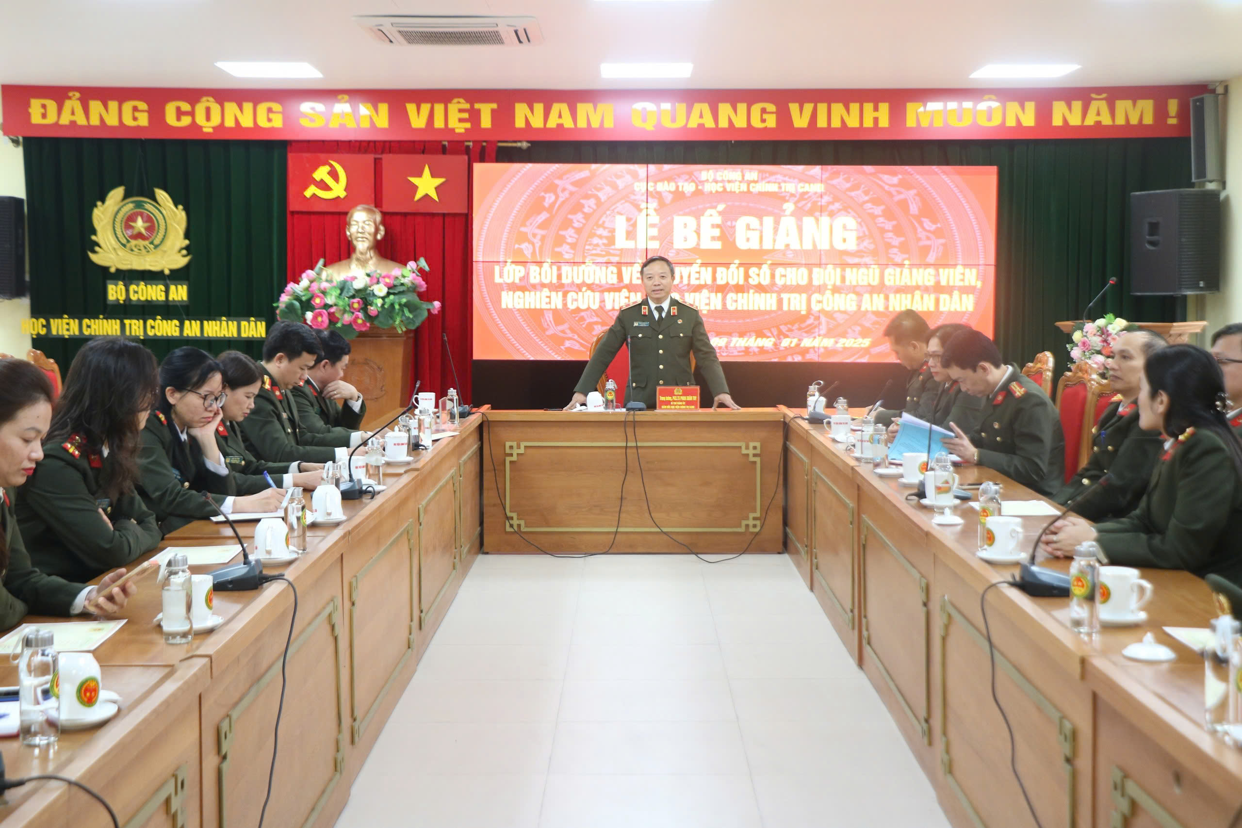 Trên cơ sở đề nghị của Học viện, ngày 24/12/2024, Cục Đào tạo đã phối hợp với Học viện tổ chức Lễ Khai giảng lớp Bồi dưỡng về chuyển đổi số cho đội ngũ giảng viên, nghiên cứu viên của Học viện. Lớp học đã được tổ chức từ ngày 25/12/2024 - 30/12/2024, với 07 chuyên đề từ cơ bản đến chuyên sâu và 01 buổi báo cáo thực tế về Định hướng, lộ trình công tác chuyển đổi số tại Học viện Chính trị CAND- Những vấn đề trọng tâm đặt ra trong thời gian tới do các báo cáo viên là chuyên gia trong lĩnh vực chuyển đổi số, có kiến thức chuyên sâu, nhiều kinh nghiệm và đang trực tiếp thực hiện công tác chuyển đổi số giảng dạy, truyền đạt. Với tổng thời gian thực học không quá dài, nhưng đã giúp học viên được trang bị, cập nhật những kiến thức rất cần thiết và hữu ích về hoạt động chuyển đổi số. Kết thúc khóa học học viên được Cục trưởng Cục Đào tạo ký Quyết định công nhận hoàn thành chương trình và cấp Giấy chứng nhận. Đặc biệt qua lớp bồi dưỡng, học viên đã được cập nhật kiến thức, nâng cao nhận thức, kỹ năng cơ bản về chuyển đổi số, công nghệ số nói chung và chuyển đổi số trong lĩnh vực giáo dục, đào tạo. Qua đó, góp phần xây dựng, bồi dưỡng đội ngũ cán bộ, giảng viên đáp ứng yêu cầu chuyển đổi số, xây dựng kiến trúc nhà trường số.