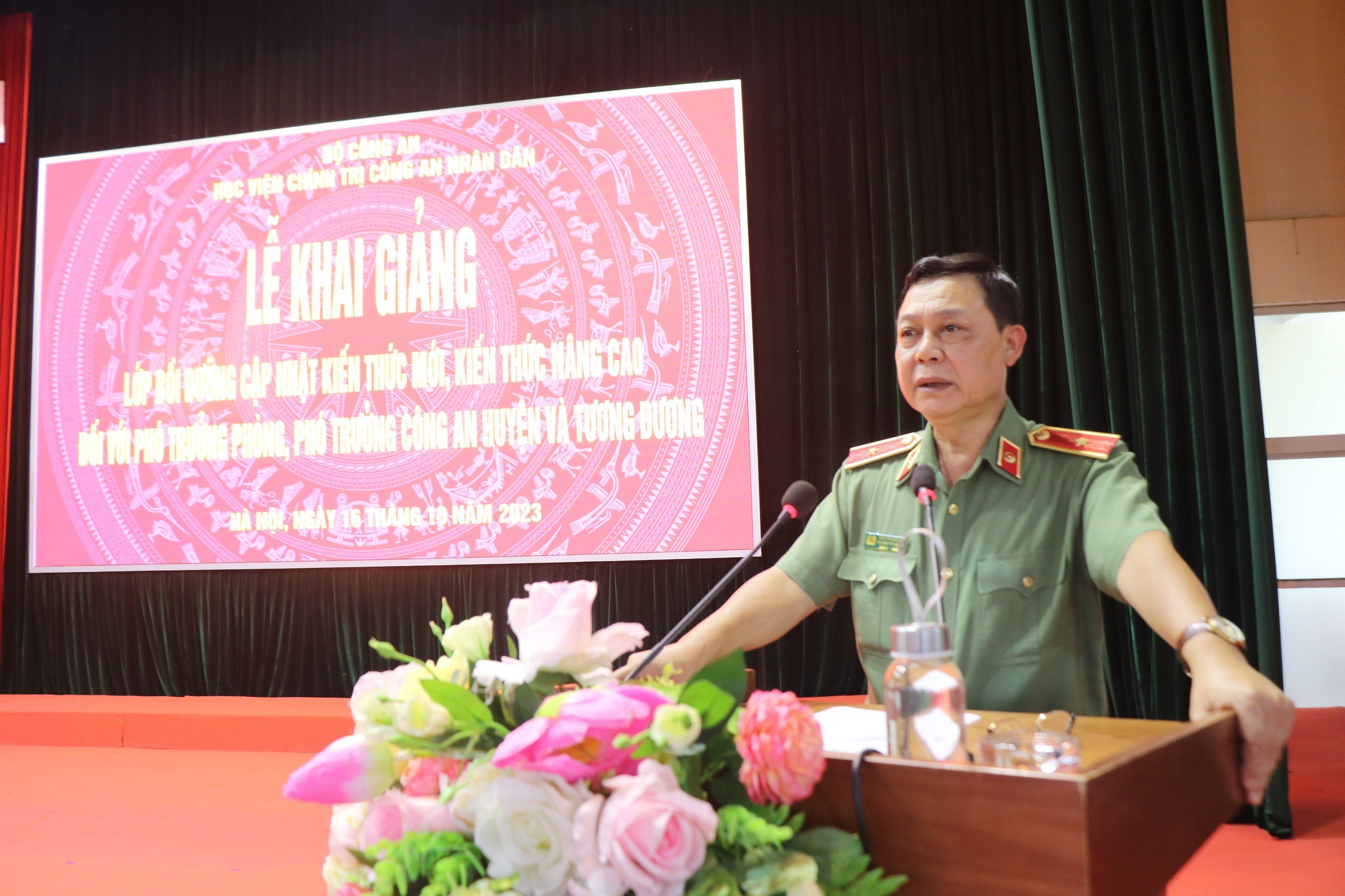 Chiều ngày 16/10/2023, Học viện Chính trị Công an nhân dân tổ chức Lễ Khai giảng Lớp Bồi dưỡng cập nhật kiến thức mới, kiến thức nâng cao đối với Phó Trưởng phòng và Phó Trưởng Công an cấp huyện và tương đương mở tại Học viện, đợt 1 năm học 2023 - 2024. Đồng chí Thiếu tướng, TS Nguyễn Như Lôi, Ủy viên Ban Thường vụ Đảng ủy, Phó Giám đốc Học viện Chính trị CAND dự và chủ trì buổi Lễ; tham dự buổi lễ khai giảng còn có đại diện lãnh đạo các đơn vị chức năng thuộc Học viện Chính trị CAND cùng toàn thể học viên khóa học.