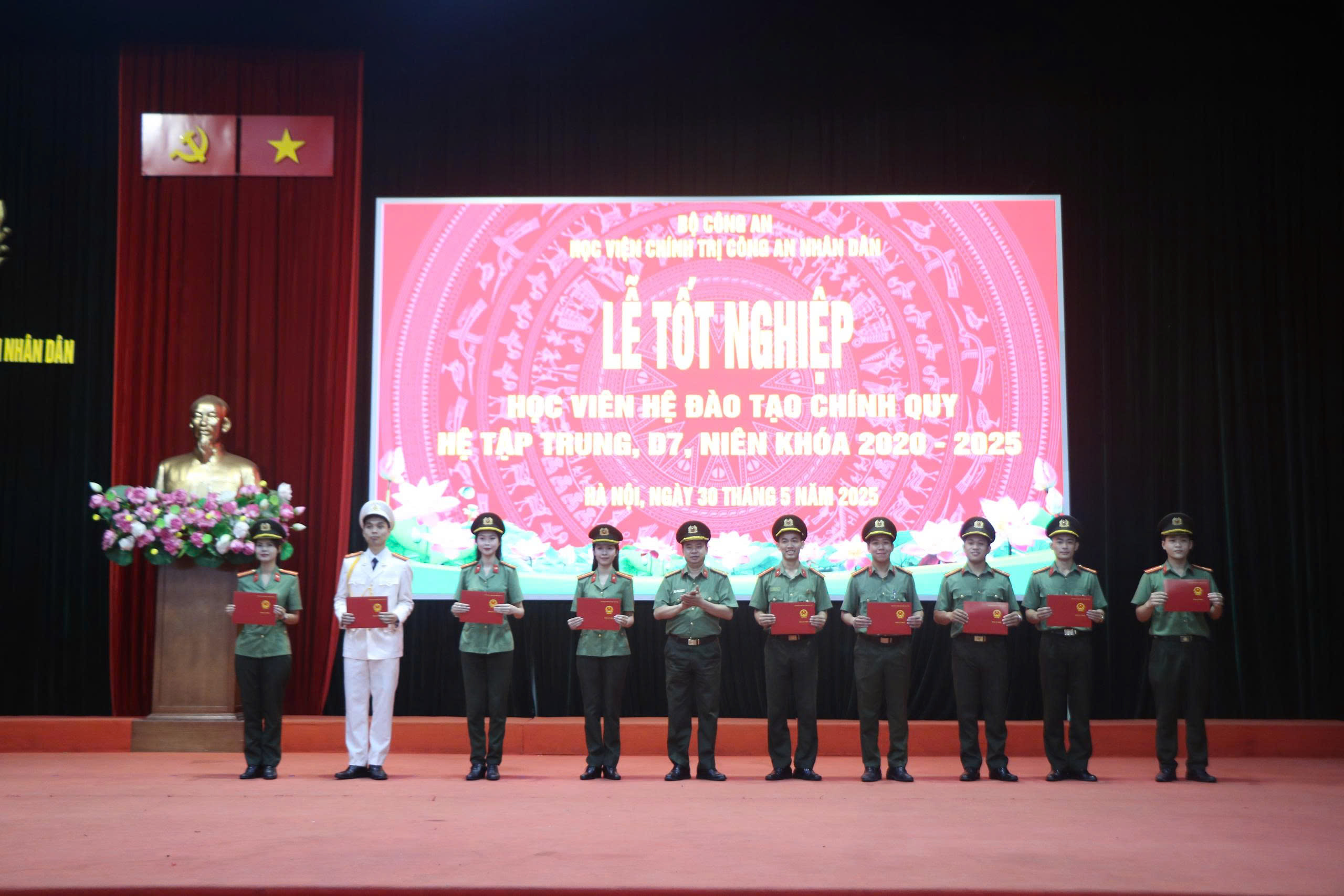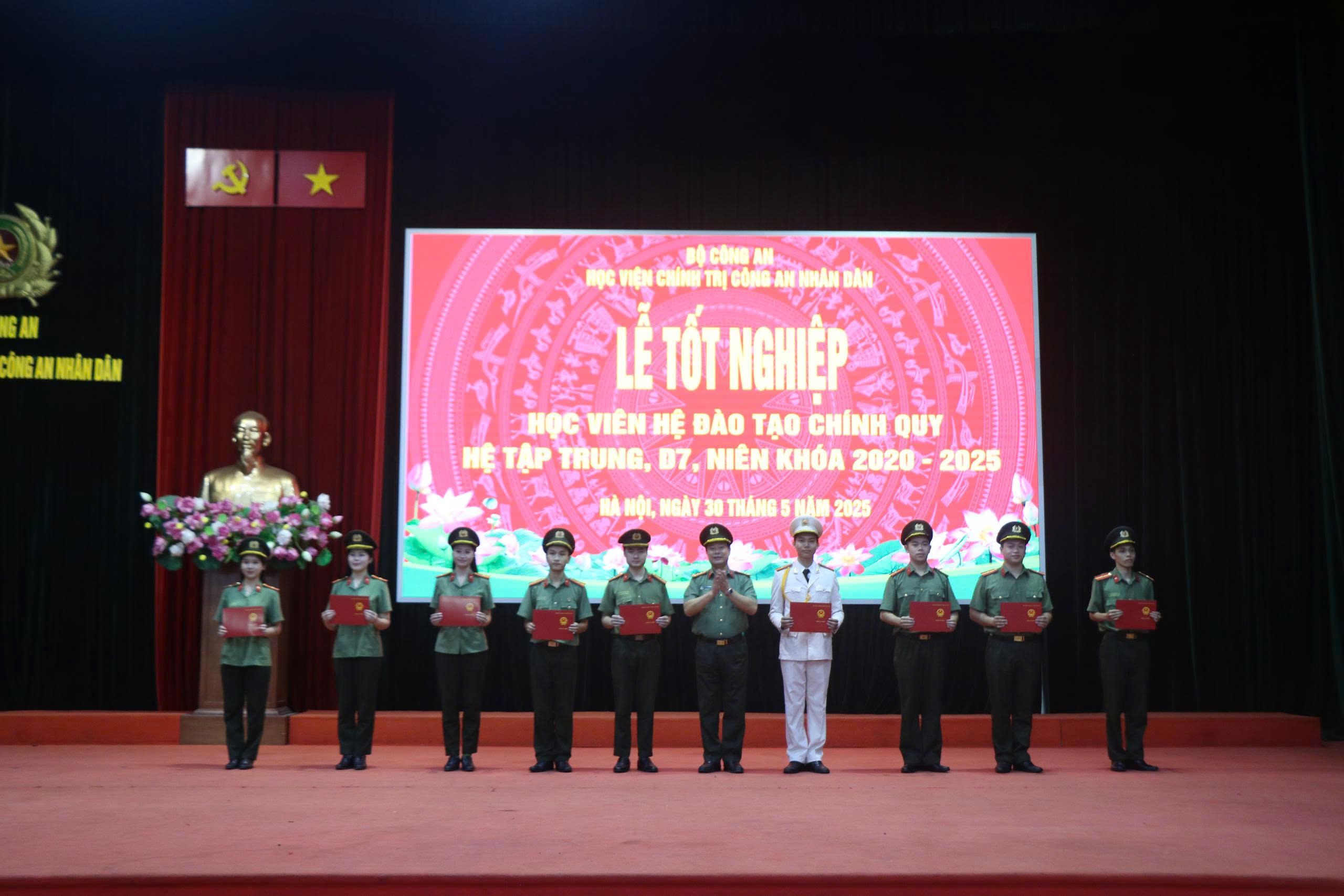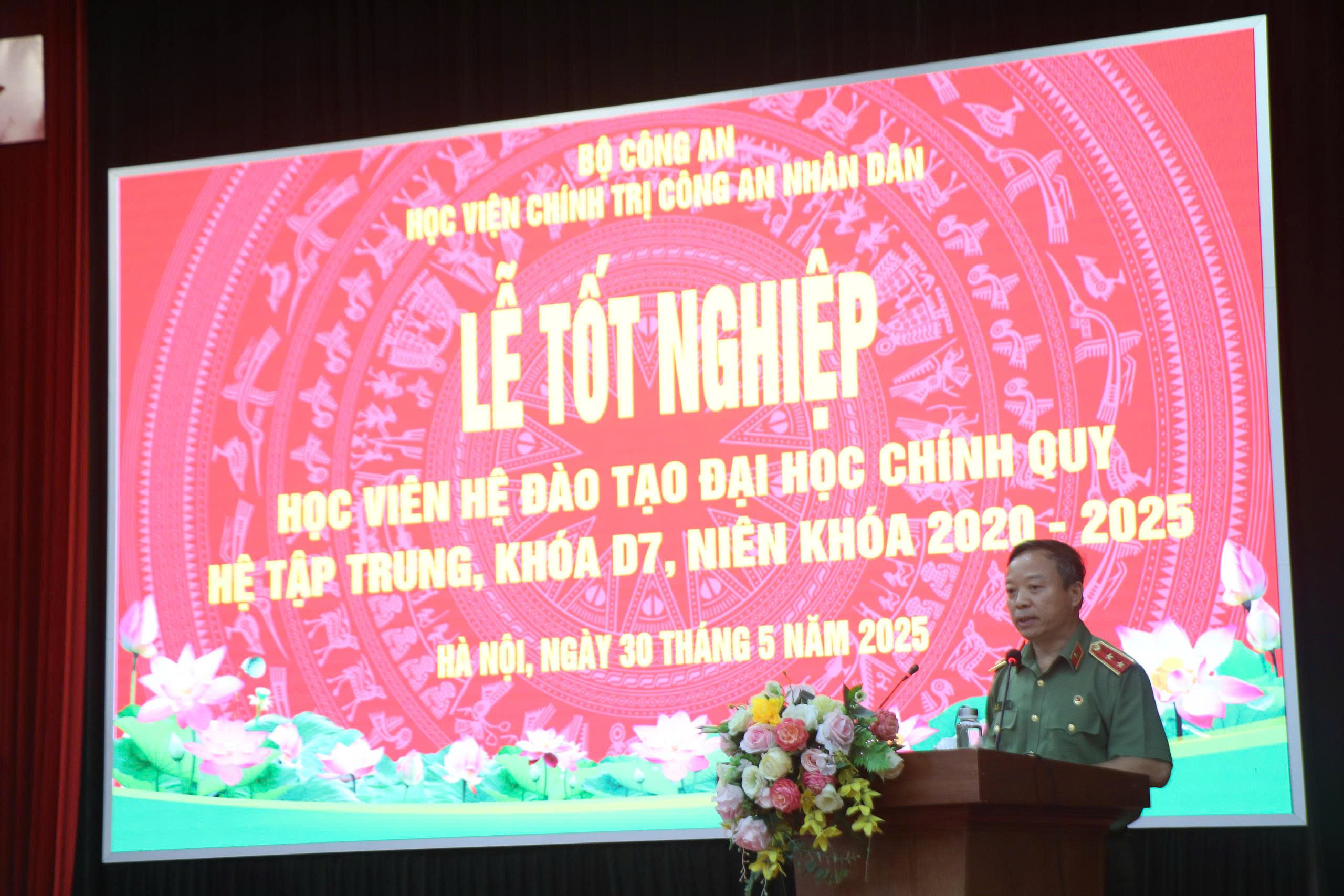 Ngày 30/5/2025, Học viện Chính trị CAND tổ chức Lễ Tốt nghiệp cho học viên đào tạo đại học chính quy Khóa D7, niên khóa 2020 - 2025. Đồng chí PGS.TS, NGƯT, Trung tướng Phan Xuân Tuy, Bí thư Đảng ủy, Giám đốc Học viện dự và chủ trì buổi Lễ; tham dự có các đồng chí trong Đảng ủy, Ban Giám đốc Học viện; đại diện lãnh đạo các đơn vị chức năng, các tổ chức quần chúng, toàn thể học viên khóa D7 và các đơn vị học viên trong toàn Học viện.