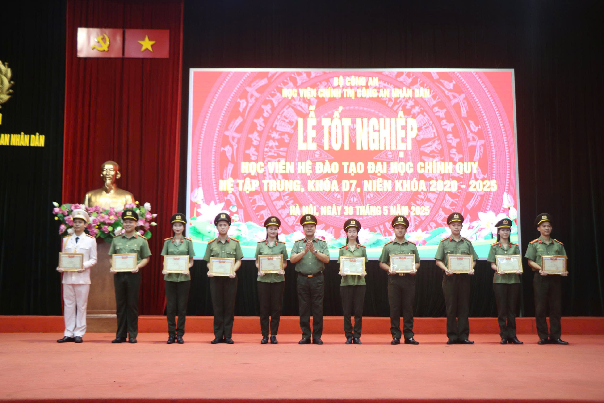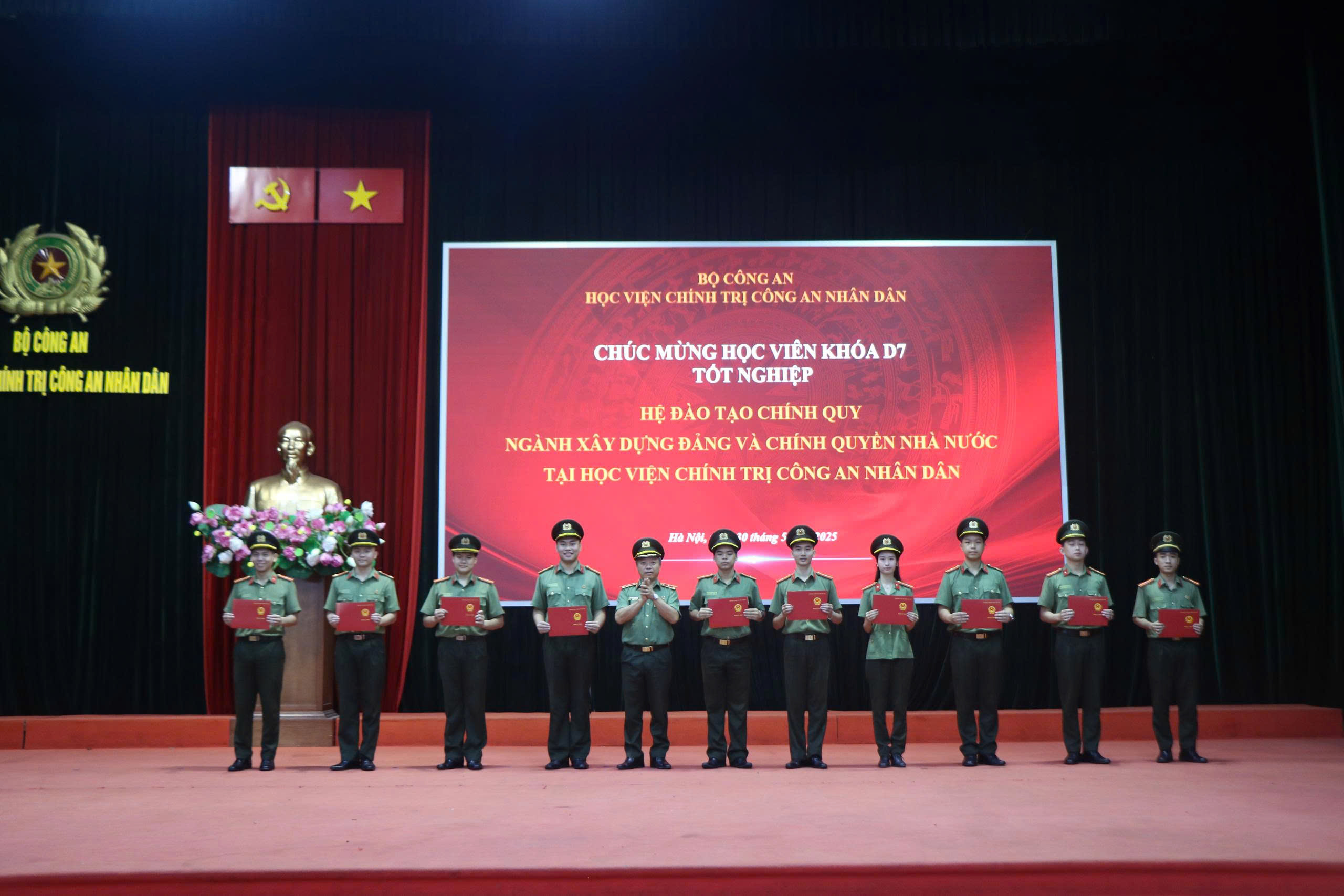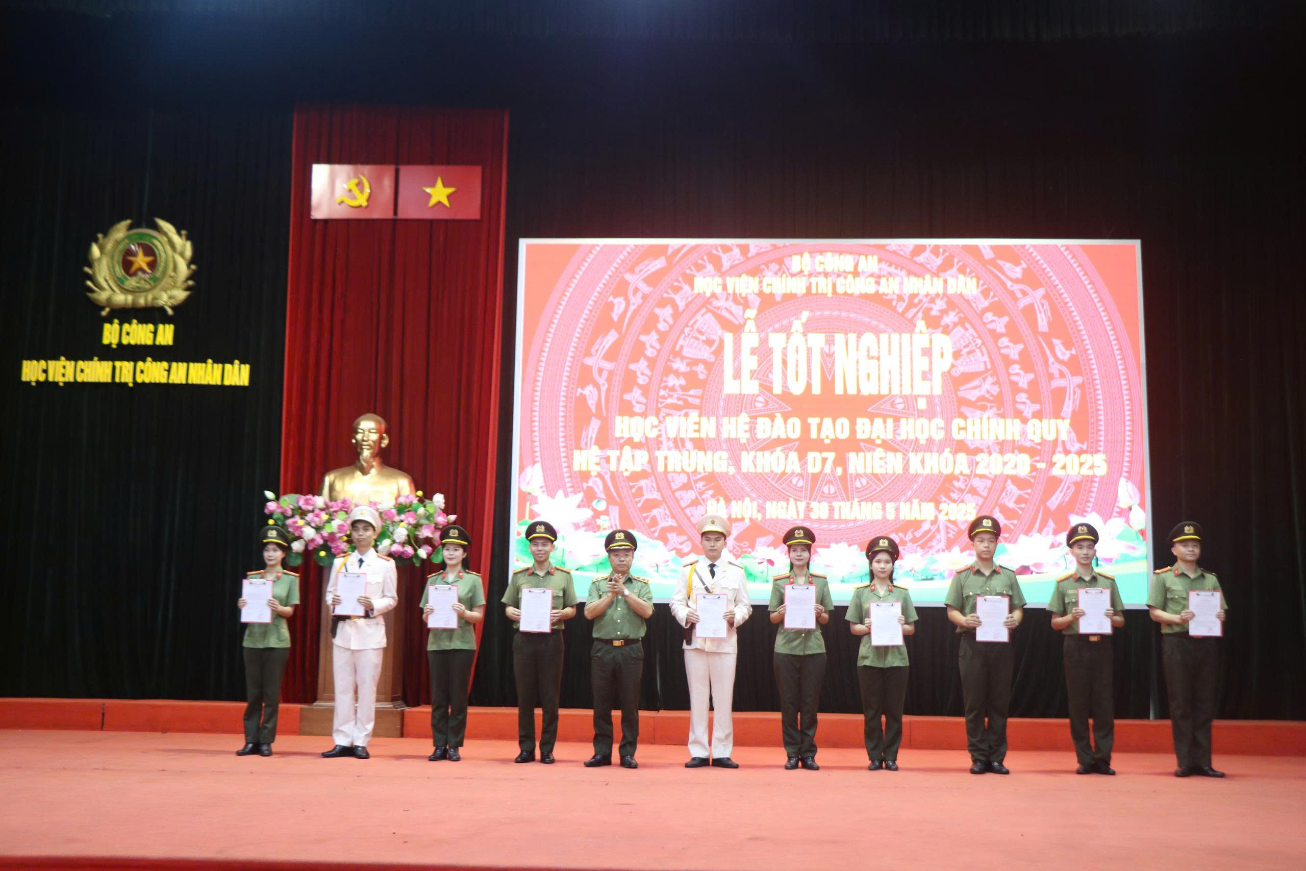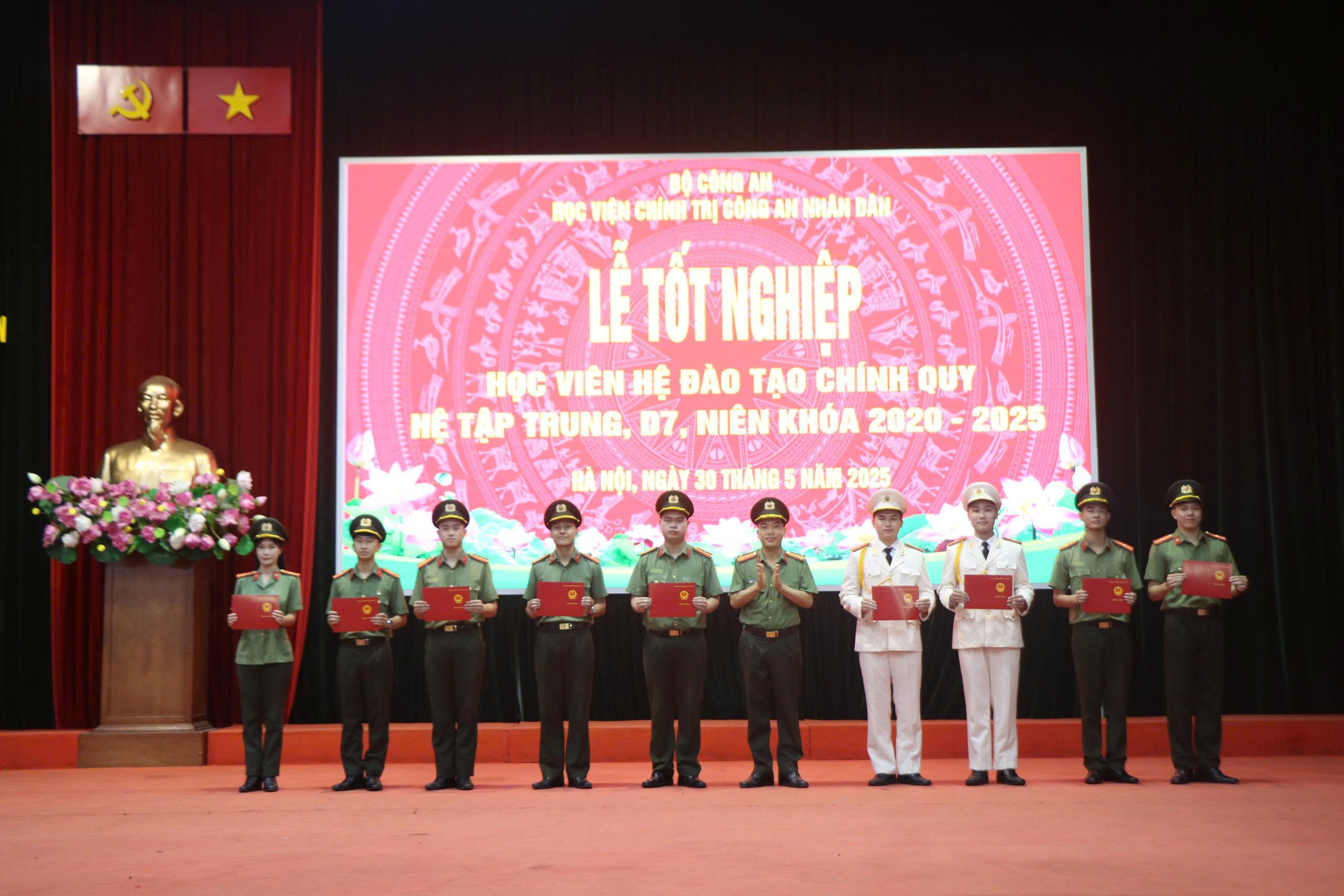 Ngày 30/5/2025, Học viện Chính trị CAND tổ chức Lễ Tốt nghiệp cho học viên đào tạo đại học chính quy Khóa D7, niên khóa 2020 - 2025. Đồng chí PGS.TS, NGƯT, Trung tướng Phan Xuân Tuy, Bí thư Đảng ủy, Giám đốc Học viện dự và chủ trì buổi Lễ; tham dự có các đồng chí trong Đảng ủy, Ban Giám đốc Học viện; đại diện lãnh đạo các đơn vị chức năng, các tổ chức quần chúng, toàn thể học viên khóa D7 và các đơn vị học viên trong toàn Học viện.