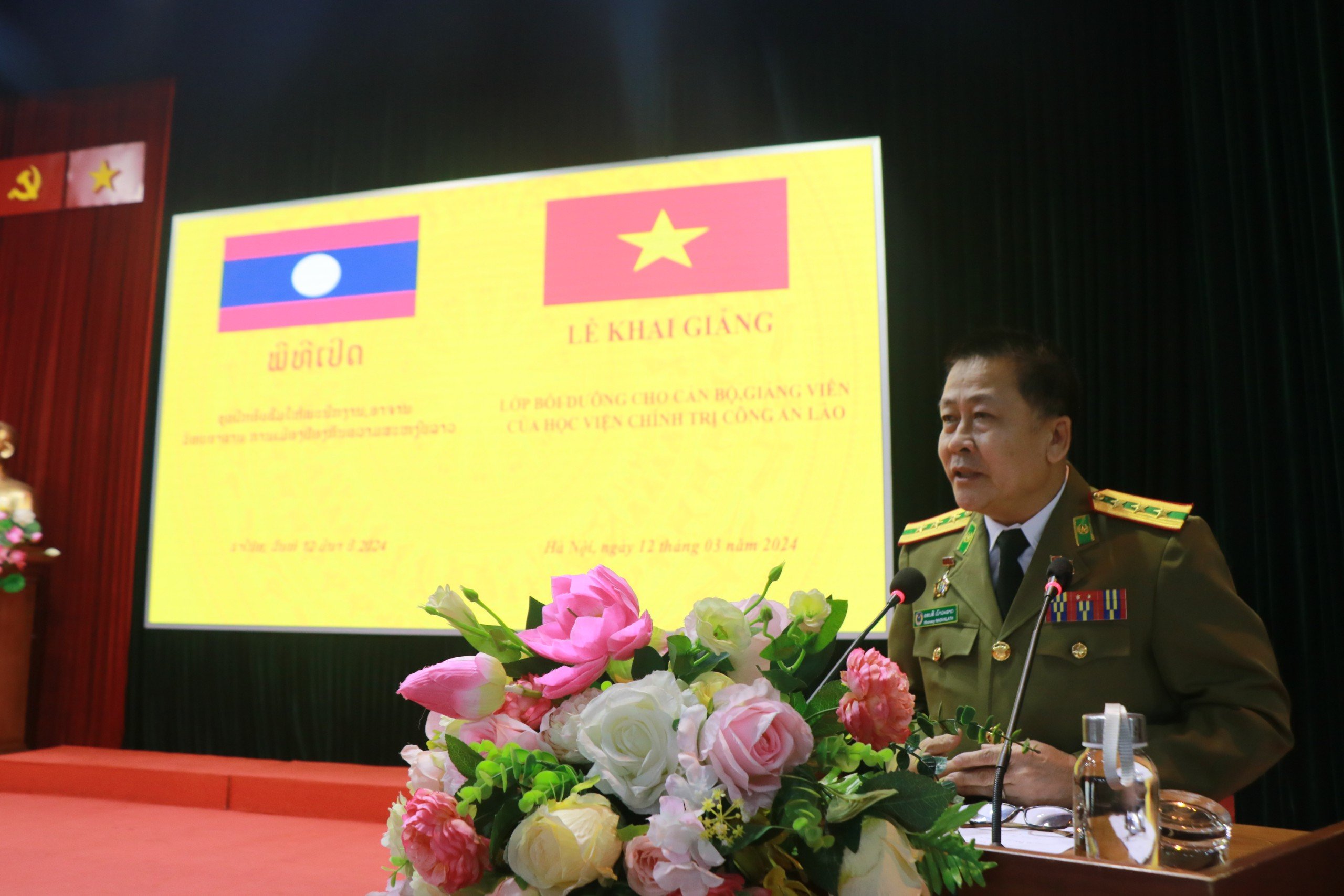 Phát biểu tại buổi lễ, thay mặt Ban Thường vụ Đảng ủy, Ban Giám đốc học viện, đồng chí Thiếu tướng Nguyễn Như Lôi chào mừng 19 đồng chí cán bộ quản lý giáo dục, tham mưu, xây dựng lực lượng và giảng viên các đơn vị chức năng thuộc Học viện Chính trị Công an Lào đến học tập tại Học viện. Nội dung khóa học trang bị cho các học viên những kiến thức cơ bản về lịch sử quan hệ đặc biệt Việt Nam - Lào, Lào - Việt Nam và những kiến thức về quản lý giáo dục, tham mưu, xây dựng lực lượng, nghiệp vụ sư phạm trong đào tạo đại học. Lớp học có ý nghĩa đặc biệt khi toàn Học viện Chính trị Công an Nhân dân đang trong khí thế thi đua sôi nổi chào mừng kỷ niệm 10 năm ngày thành lập và chính thức đi vào hoạt động. Đồng chí Phó Giám đốc Học viện nhấn mạnh đây là các khóa bồi dưỡng rất quan trọng, nằm trong kế hoạch hợp tác giữa hai Bộ, được Lãnh đạo Bộ Công an Việt Nam và Lãnh đạo Bộ Công an Lào quan tâm sát sao, thường xuyên chỉ đạo. Học viện Chính trị CAND rất vinh dự được giao nhiệm vụ tổ chức khóa học, đã có sự chuẩn bị hết sức kỹ lưỡng và sẽ nỗ lực đáp ứng tốt nhất những điều kiện đảm bảo tổ chức thành công khóa học. Thay mặt Ban thường vụ Đảng ủy, Ban Giám đốc Học viện, đồng chí Thiếu tướng Nguyễn Như Lôi quán triệt đối với các đơn vị thuộc Học viện phải chuẩn bị các điều kiện về cơ sở vật chất, phòng học, phòng nghỉ cho giảng viên, học viên chu đáo, đáp ứng tốt nhất nhu cầu học tập, sinh hoạt; thường xuyên nắm bắt tâm tư, phản ánh của giáo viên, học viên để có điều chỉnh cho phù hợp trên tinh thần đáp ứng tối đa những nhu cầu, đề nghị chính đáng, phù hợp. Đồng thời, Học viện cũng mong muốn trong quá trình đào tạo được chia sẻ, trao đổi các kinh nghiệm hay, cách làm quý của các cán bộ, giảng viên Học viện Chính trị Công an Lào nhằm nâng cao chất lượng, hiệu quả hoạt động của hai học viện, xứng đáng là các trung tâm đào tạo, nghiên cứu lý luận chính trị hàng đầu của lực lượng Công an hai nước.