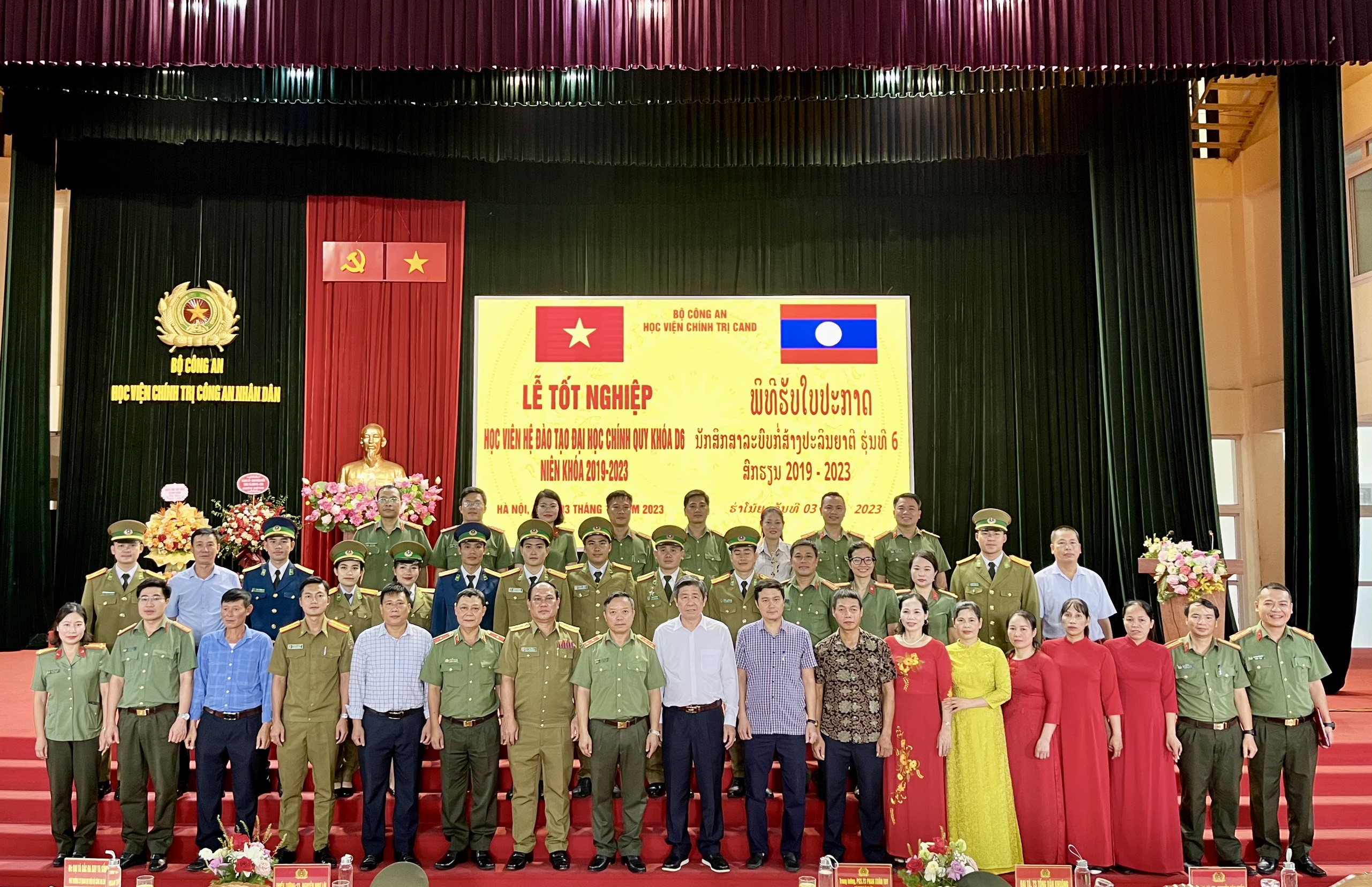 Chiều ngày 03/10/2023, Học viện Chính trị Công an nhân dân tổ chức Lễ tốt nghiệp cho học viên hệ đào tạo đại học chính quy khóa D6, niên khóa 2019 - 2023. Đồng chí Trung tướng, PGS. TS Phan Xuân Tuy, Bí thư Đảng ủy, Giám đốc Học viện chủ trì buổi Lễ. Tham dự buổi Lễ có: đồng chí Tiến sĩ Khămtăn Sổmvông, Tham tán Giáo dục - Văn hóa, Đại sứ quán nước CHDCND Lào tại Việt Nam; đồng chí Đại tá Sắcđaxayya Sổngkham, Phó Trưởng Cơ quan đại diện Bộ Công an nước CHDCND Lào tại Việt Nam; các đồng chí lãnh đạo Đảng ủy, UBND và các gia đình nơi học viên khóa D6 thực tế dân vận tại xã Phú Cường, huyện Sóc Sơn, thành phố Hà Nội; các đồng chí trong Ban Giám đốc Học viện; lãnh đạo các đơn vị thuộc Học viện cùng toàn thể học viên khóa học.