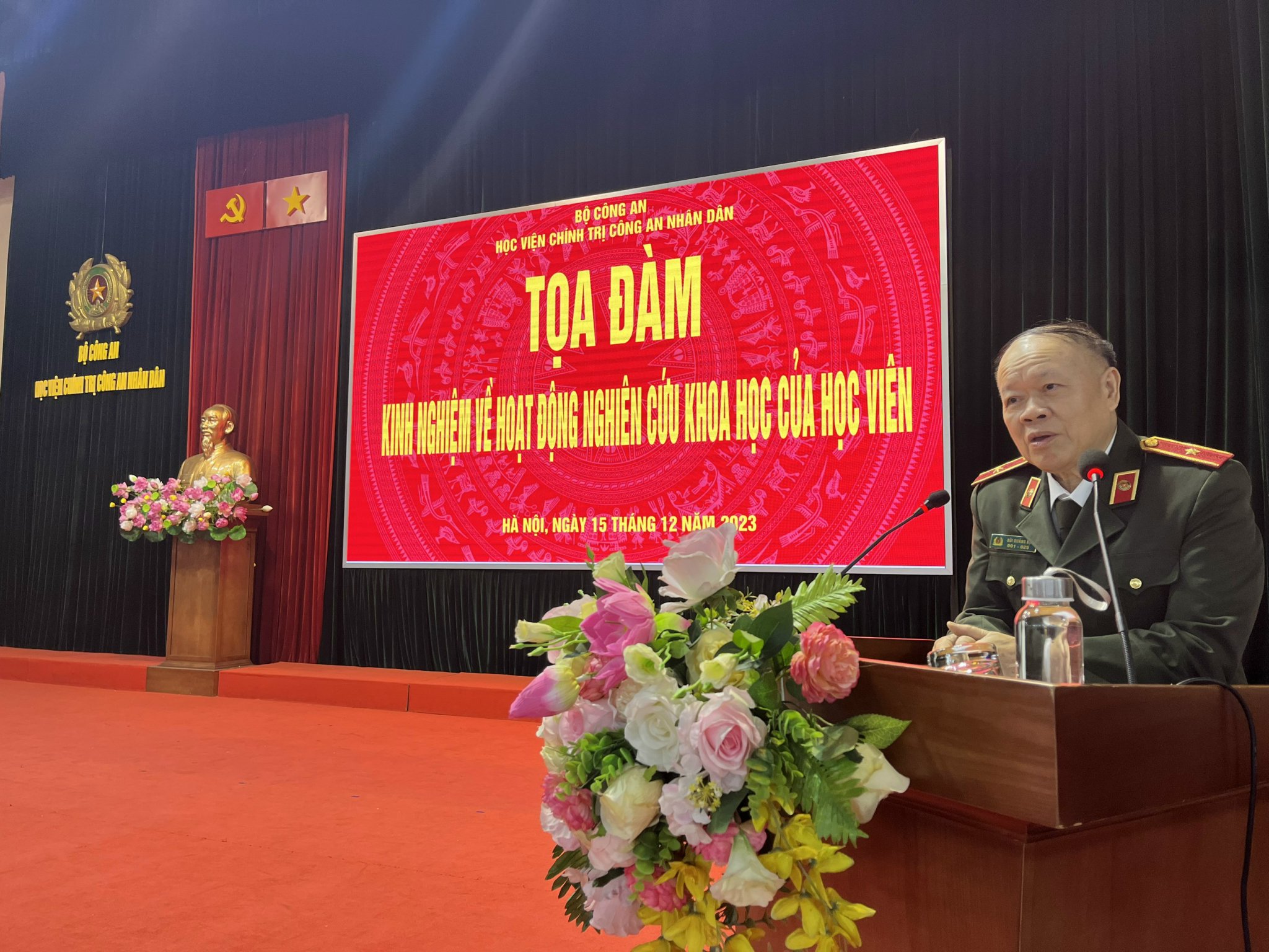 Quán triệt, triển khai chủ trương, chỉ đạo của Thường vụ Đảng uỷ, Ban Giám đốc Học viện, trong phần thứ hai của buổi lễ, Ban Tổ chức đã mời đồng chí Thiếu tướng, GS. TS Bùi Quảng Bạ, nguyên Phó Tổng Cục trưởng Tổng cục An ninh, nguyên Viện trưởng Viện Chiến lược và Khoa học Bộ Công an, chuyên gia cao cấp của Học viện chia sẻ kinh nghiệm nghiên cứu khoa học của bản thân, đồng thời tư vấn, định hướng việc lựa chọn các vấn đề có tính cấp thiết (tính thời sự, chính trị và phù hợp với khả năng nghiên cứu của học viên) để học viên nghiên cứu, lựa chọn đăng ký chuyên đề; phương pháp và những vấn đề cần chú ý trong quá trình thực hiện chuyên đề nghiên cứu khoa học của học viên; giải đáp các vấn đề có liên quan đến hoạt động nghiên cứu khoa học của học viên Học viện./.