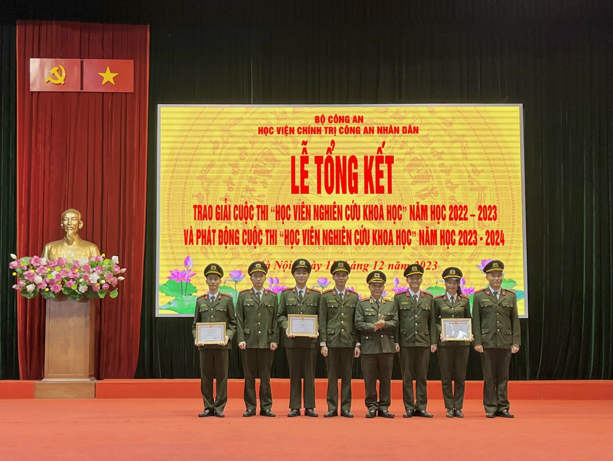 Thực hiện Chương trình công tác năm học 2023 - 2024 và Kế hoạch tổ chức các hoạt động đẩy mạnh phong trào thi đua dạy giỏi, học tập và rèn luyện tốt trong Học viện Chính trị CAND năm học 2023 - 2024, ngày 15/12/2023, Học viện Chính trị CAND đã long trọng tổ chức Lễ tổng kết, trao giải cuộc thi “Học viên nghiên cứu khoa học” năm học 2022 - 2023 và phát động cuộc thi “học viên nghiên cứu khoa học” năm học 2023 - 2024. Đồng chí Thiếu tướng, TS Nguyễn Như Lôi, Ủy viên Ban Thường vụ Đảng uỷ, Phó Giám đốc Học viện chủ trì buổi lễ.
