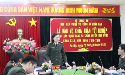 Ngày 19/3/2020, Học viện Chính trị Công an nhân dân tổ chức Lễ bảo vệ khóa luận tốt nghiệp cho học viên khóa D2LK, ngành Xây dựng Đảng và Chính quyền nhà nước, niên khóa 2015 - 2019. Đồng chí Thiếu tướng, PGS.TS Phan Xuân Tuy, Phó Giám đốc Học viện, đồng chí Đại tá, PGS.TS Đinh Ngọc Hoa, Phó Giám đốc Học viện và đồng chí Thượng tá, PGS.TS Lê Trọng Hanh, Trưởng khoa Xây dựng Đảng và Chính quyền nhà nước là chủ tịch 03 hội đồng đánh giá khóa luận