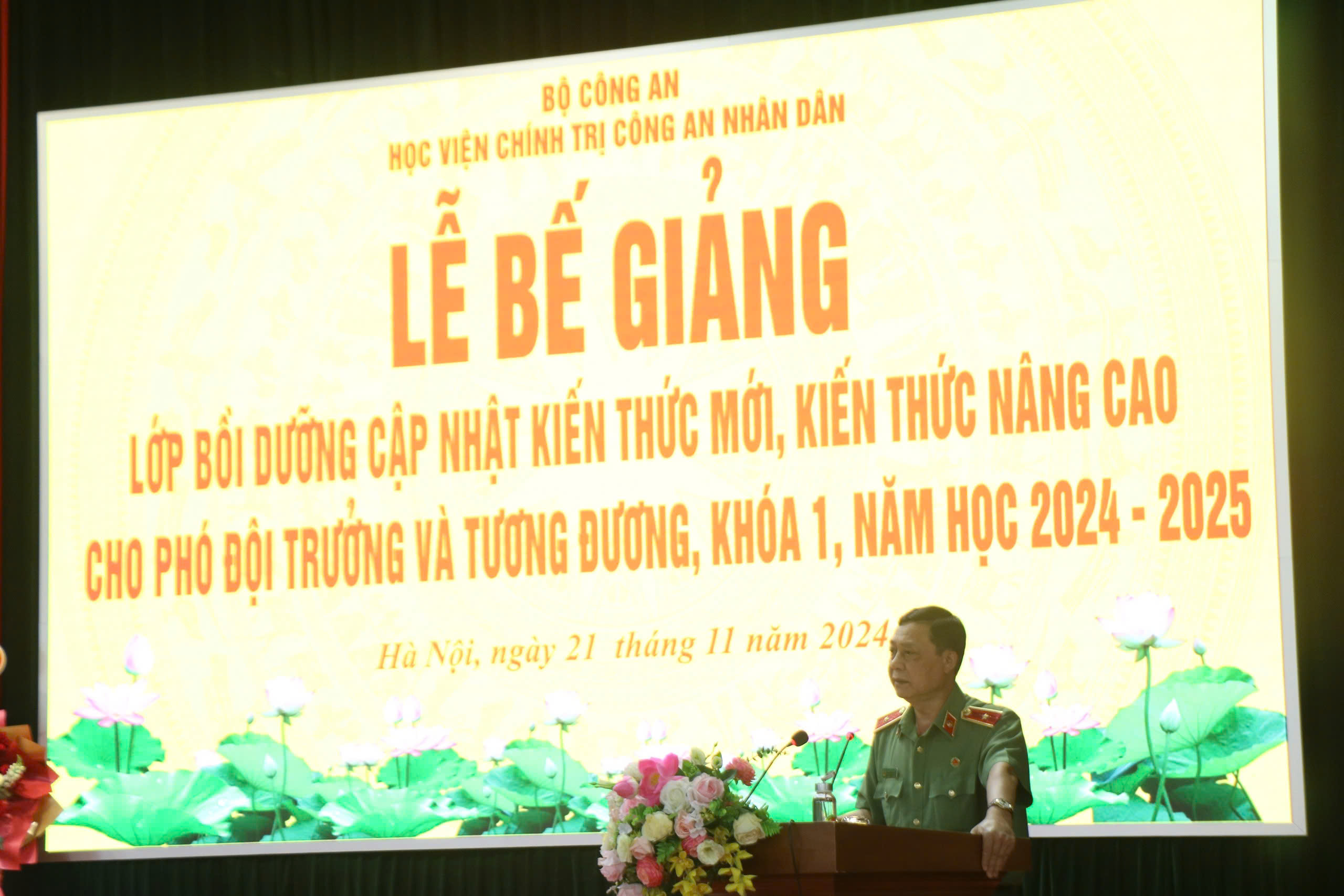 Thực hiện chương trình công tác năm học, ngày 21/11/2024, Học viện Chính trị CAND đã trang trọng tổ chức Lễ bế giảng lớp bồi dưỡng cập nhật kiến thức mới, kiến thức nâng cao cho Phó Đội trưởng và tương đương - Khóa 1, năm học 2024-2025. Đồng chí Thiếu tướng, TS Nguyễn Như Lôi, Phó Bí thư Đảng ủy, Phó Giám đốc Học viện Chính trị CAND chủ trì buổi lễ. Tham dự buổi lễ có đại diện lãnh đạo các đơn vị thuộc Học viện và toàn thể học viên của lớp học.