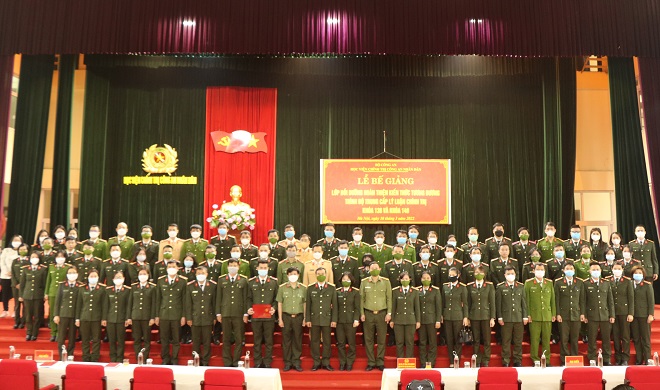 Học viện Chính trị CAND tổ chức mở lớp Lớp bồi dưỡng hoàn thiện kiến thức tương đương trình độ trung cấp lý luận chính trị vừa đáp ứng yêu cầu nâng cao trình độ lý luận chính trị, bản lĩnh chính trị cho cán bộ, chiến sĩ trong lực lượng Công an, vừa hoàn thiện các tiêu chuẩn của chức danh chuyên môn nghiệp vụ và tiêu chuẩn các chức vụ lãnh đạo, chỉ huy theo quy định của Bộ Công an. Từ đó, giúp học viên nâng cao đạo đức cách mạng, năng lực công tác, tư duy khoa học biện chứng, giải quyết hiệu quả những vấn đề mới, vấn đề nảy sinh trong cuộc sống và thực tiễn công tác. Nhằm thích ứng linh hoạt với yêu cầu phòng chống dịch bệnh Covid-19, lớp học đã được tổ chức dưới hình thức học trực tuyến.