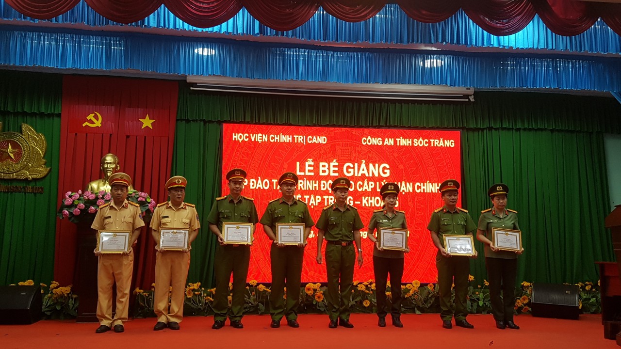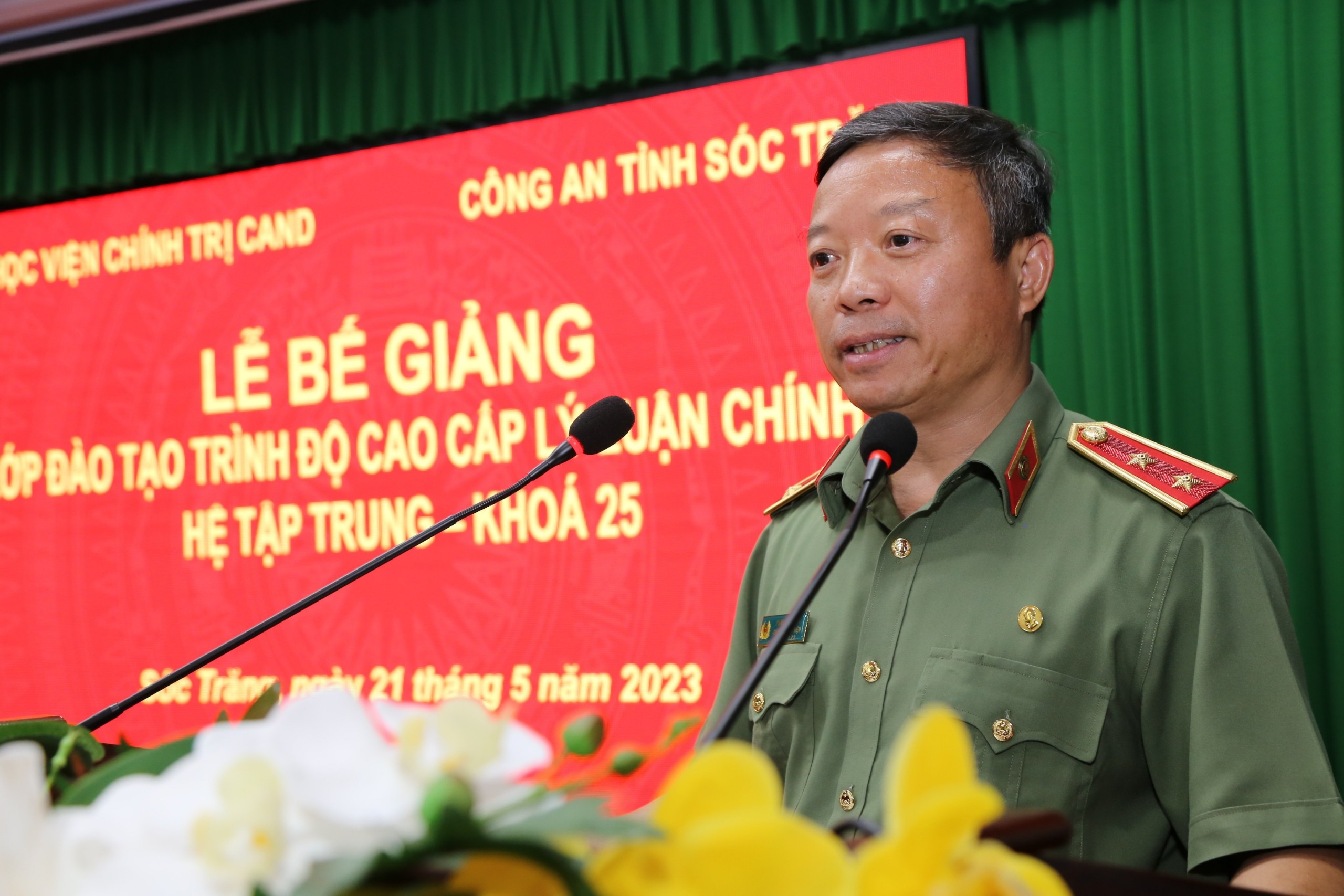 Phát biểu tại buổi lễ, đồng chí Đại tá Trần Văn Hòa, Ủy viên Ban Thường vụ Đảng ủy, Phó Giám đốc Công an tỉnh Sóc Trăng khẳng định sự phối hợp chặt chẽ của Học viện với Công an tỉnh đã tạo nên thành công của lớp học. Đồng chí cảm ơn và hi vọng rằng trong thời gian tới, Học viện Chính trị CAND tiếp tục phối hợp, giúp đỡ Công an tỉnh Sóc Trăng trong công tác tổ chức đào tạo, bồi dưỡng cán bộ chiến sỹ theo yêu cầu chuẩn hóa cán bộ theo quy định của Đảng, Nhà nước và lực lượng CAND, đáp ứng nhiệm vụ bảo đảm an ninh trật tự trong tình hình mới. Đồng chí Giám đốc Công an tỉnh đã biểu dương kết quả học tập của các học viên và yêu cầu ngay sau khi trở về đơn vị công tác, các học viên tiếp tục không ngừng trau dồi bản lĩnh chính trị, vận dụng tốt các kiến thức đã học vào nhiệm vụ thực tế công tác.
