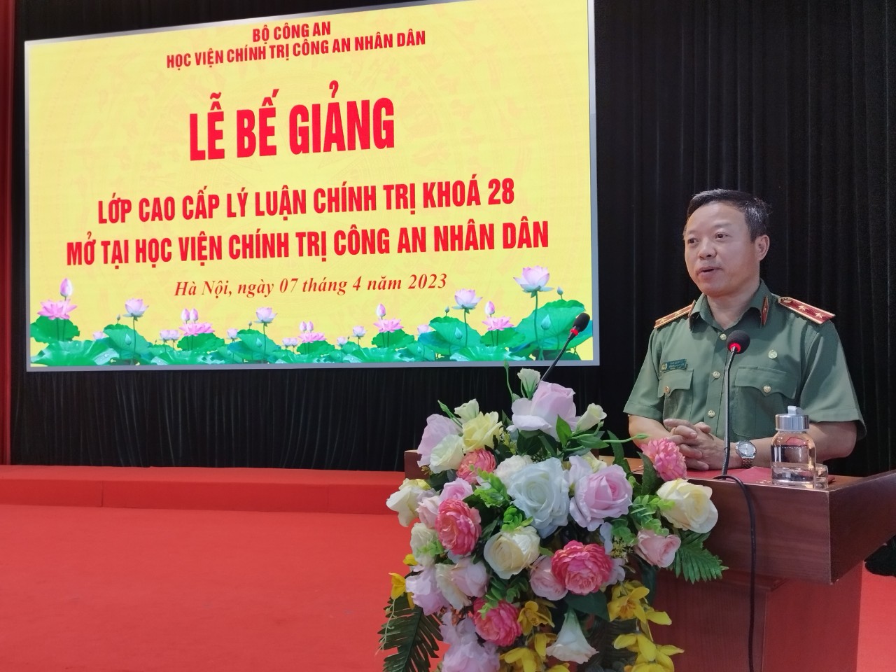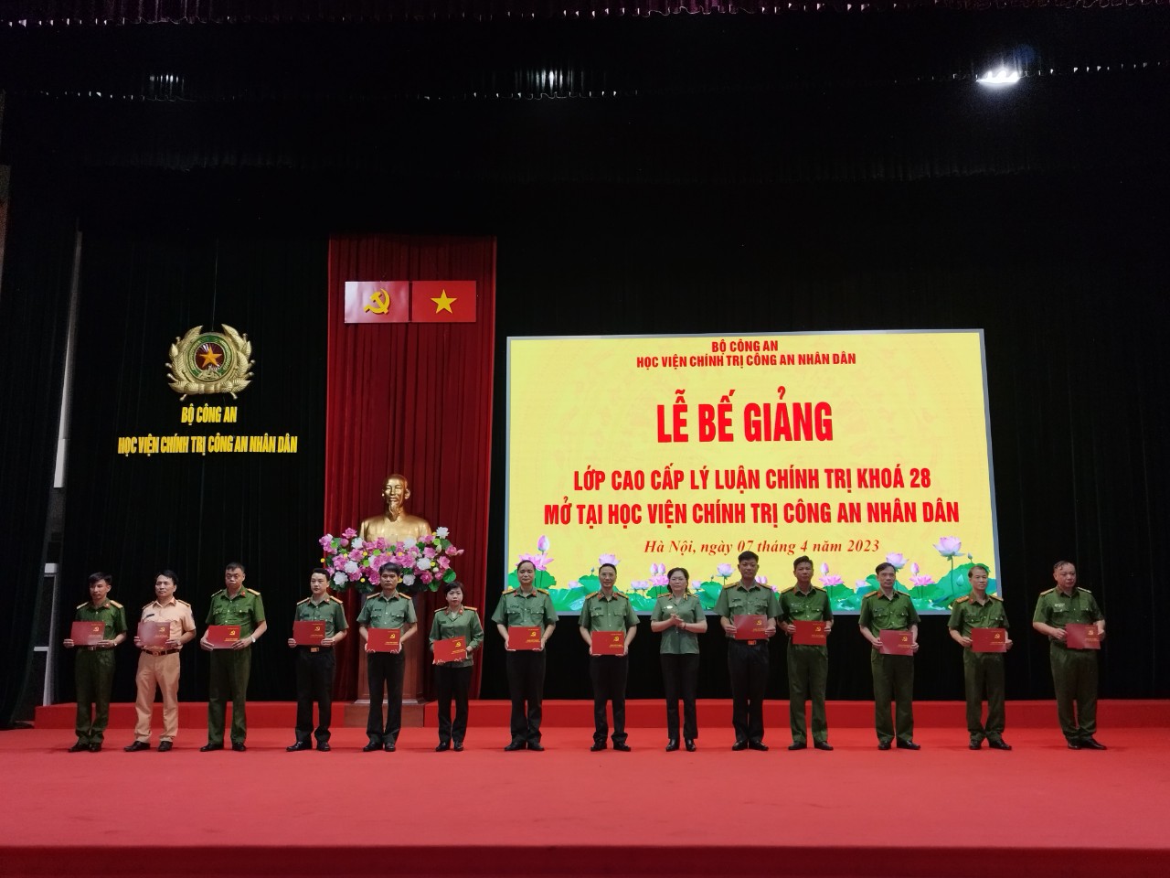 Ngày 07/4/2023, Học viện Chính trị CAND tổ chức Lễ Bế giảng lớp Cao cấp lý luận chính trị Khóa 28 tổ chức tại Học viện. Trung tướng, PGS.TS Phan Xuân Tuy, Bí thư Đảng ủy, Giám đốc Học viện chủ trì buổi lễ. Tham dự có các đồng chí trong Đảng ủy, Ban Giám đốc Học viện; đại diện lãnh đạo các đơn vị và toàn thể học viên khóa học.