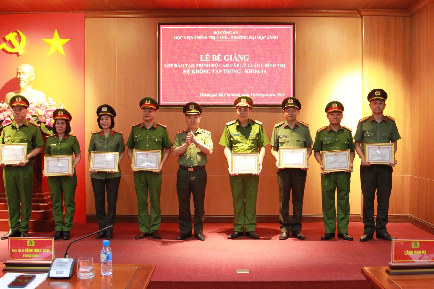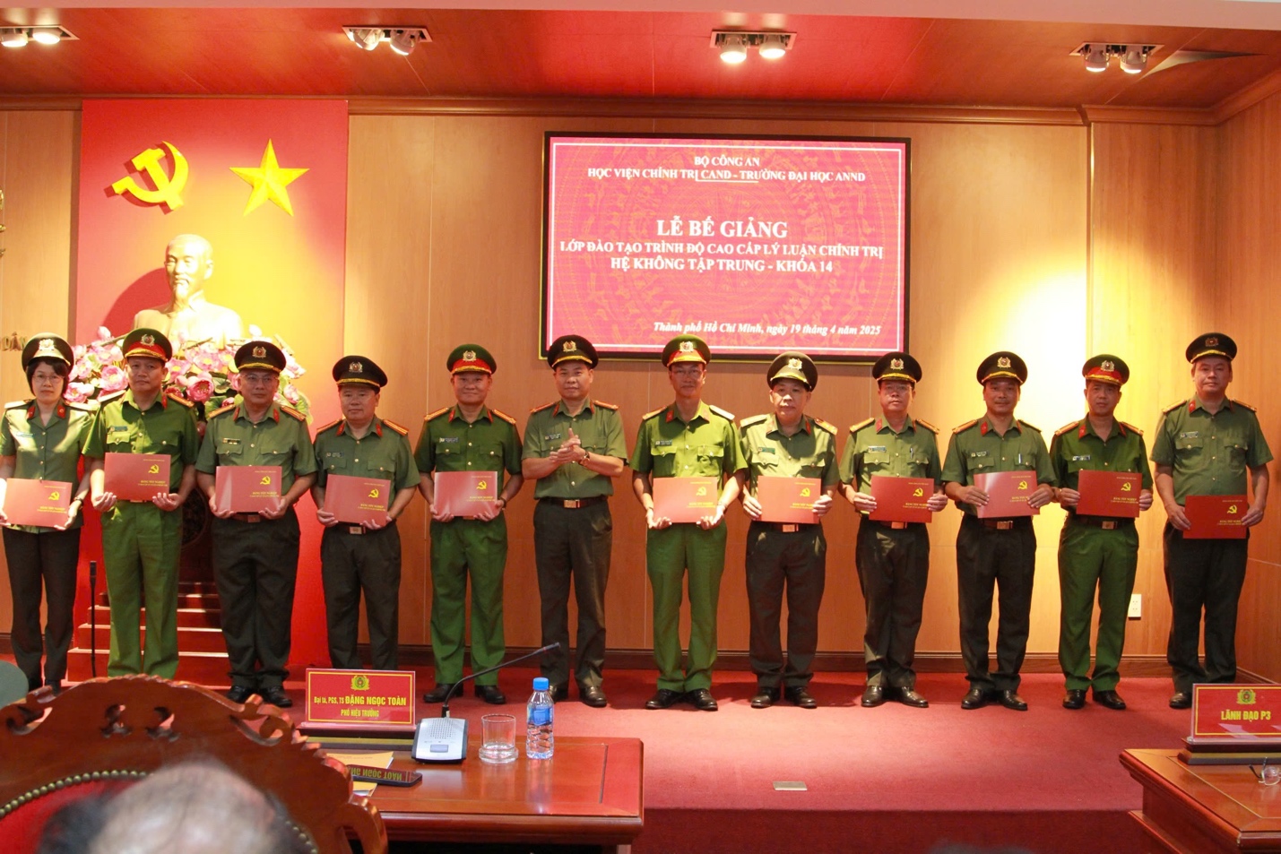 Ngày 19 tháng 4 năm 2025, tại thành phố Hồ Chí Minh, Học viện Chính trị CAND phối hợp với Trường Đại học An ninh nhân dân tổ chức lễ bế giảng lớp đào tạo trình độ Cao cấp lý luận chính trị, hệ không tập trung, khóa 14 mở tại Trường Đại học An ninh nhân dân. Đồng chí PGS.TS, NGƯT, Trung tướng Phan Xuân Tuy, Bí thư Đảng ủy, Giám đốc Học viện chủ trì buổi lễ.