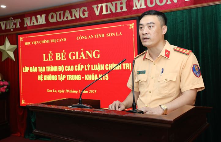 Thay mặt tập thể học viên lớp học, đồng chí Phạm Kiên Trung đã gửi lời cảm ơn sâu sắc tới Đảng ủy, Ban Giám đốc Học viện Chính trị CAND, Đảng ủy, Ban Giám đốc Công an tỉnh Sơn La; các thầy giáo, cô giáo, các đơn vị chức năng đã quan tâm, tạo mọi điều kiện để khóa học thành công tốt đẹp và hứa sau khi trở về đơn vị công tác tại sẽ tích cực học hỏi, trau dồi, áp dụng hiệu quả kiến thức đã được học, phục vụ thực tiễn công tác chuyên môn.