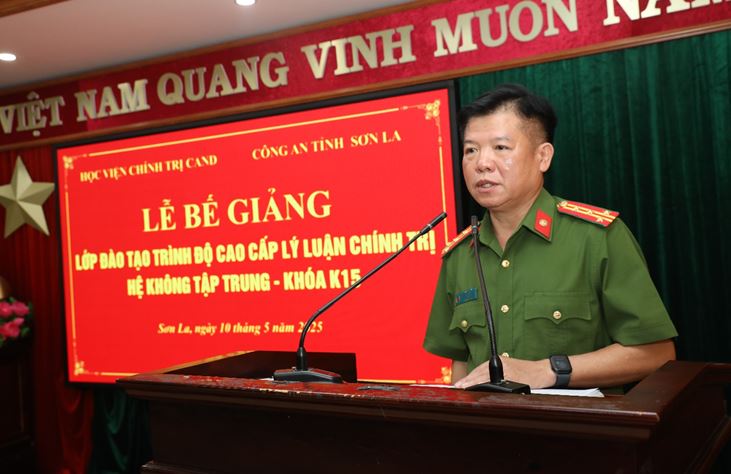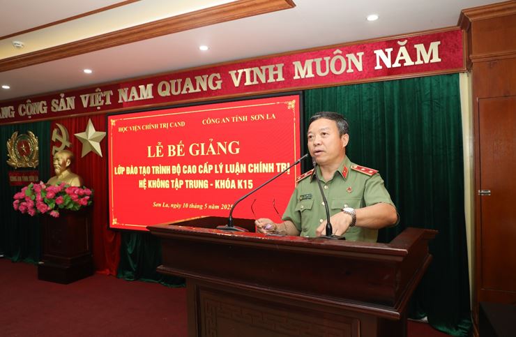 Ngày 10/5/2025, Học viện Chính trị CAND phối hợp với Công an tỉnh Sơn La tổ chức lễ bế giảng lớp đào tạo trình độ Cao cấp lý luận chính trị, hệ không tập trung, khóa 15 mở tại Công an tỉnh Sơn La. Đồng chí PGS.TS, NGƯT, Trung tướng Phan Xuân Tuy, Bí thư Đảng ủy, Giám đốc Học viện chủ trì buổi lễ.