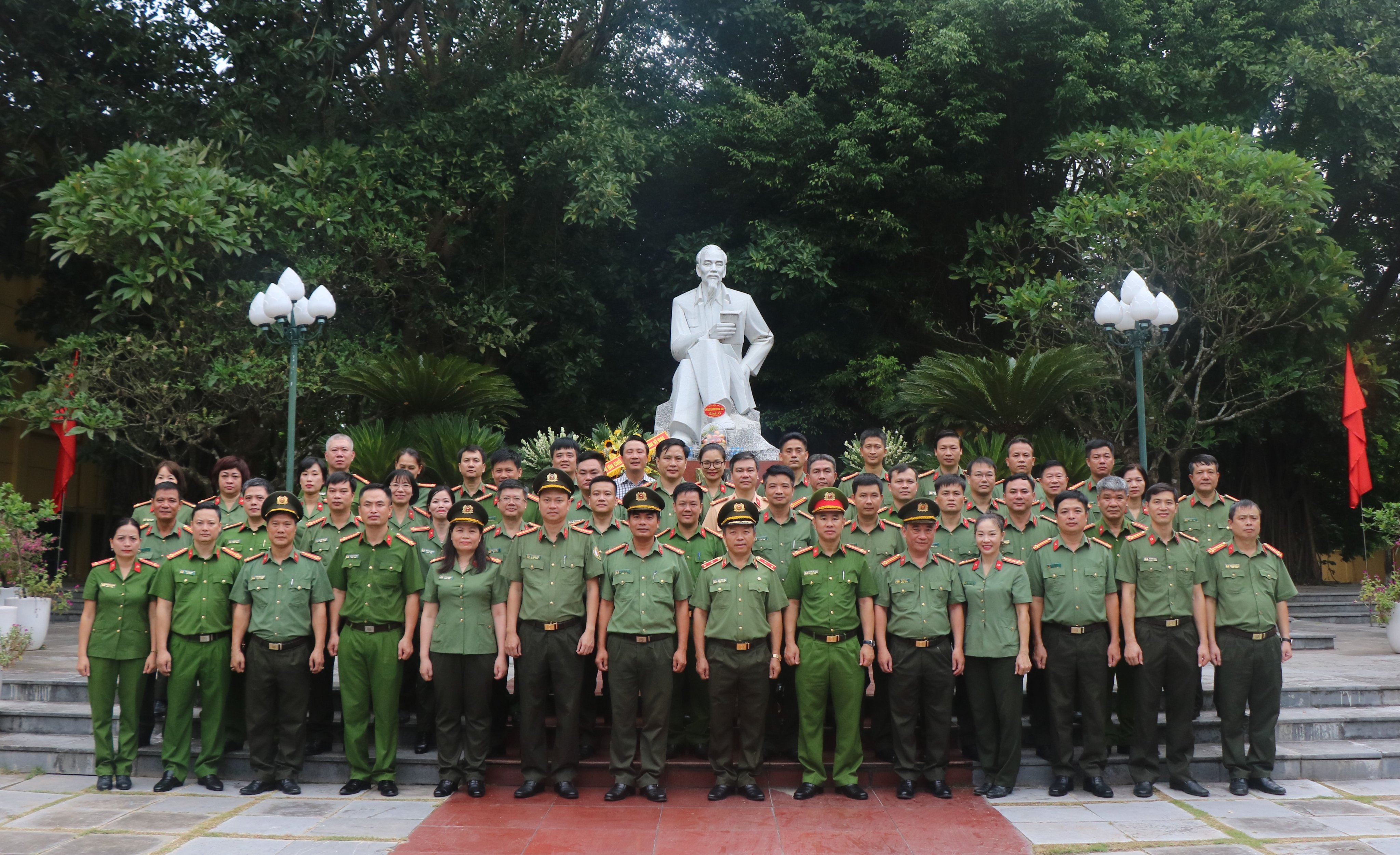Đồng chí Giám đốc cùng các đồng chí học viên dâng hương, dâng hoa tại tượng đài Chủ tịch Hồ Chí Minh