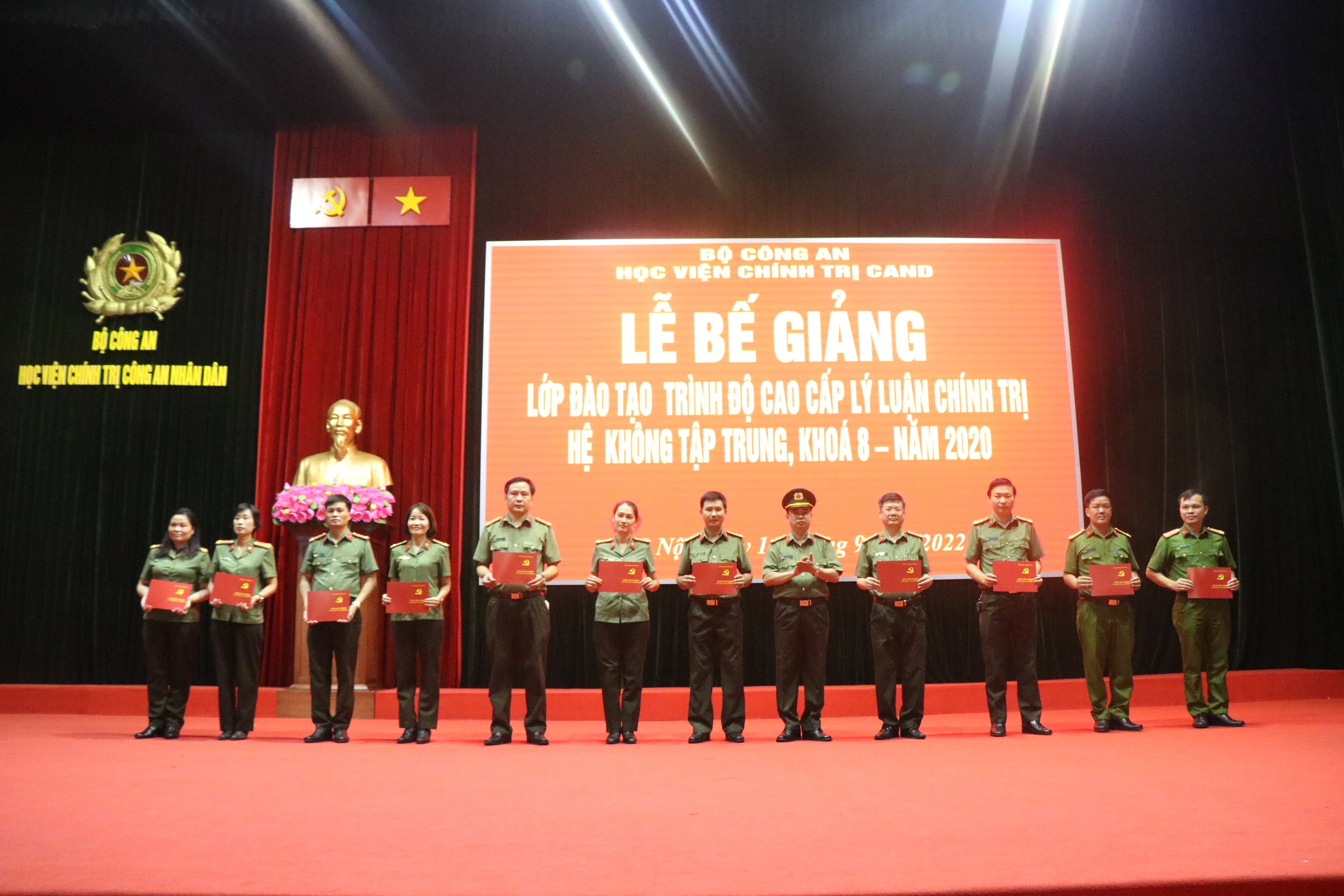 Ngày 16/9/2022, Học viện Chính trị Công an nhân dân tổ chức bế giảng lớp đào tạo trình độ Cao cấp lý luận chính trị, hệ không tập trung - khóa 8 mở tại Học viện. Đồng chí Trung tướng, PGS.TS Phan Xuân Tuy, Bí thư Đảng ủy, Giám đốc Học viện chủ trì buổi lễ. Tham dự có các đồng chí trong Ban Giám đốc Học viện; đại diện lãnh đạo các đơn vị chức năng của Học viện Chính trị CAND cùng toàn thể học viên khóa học.