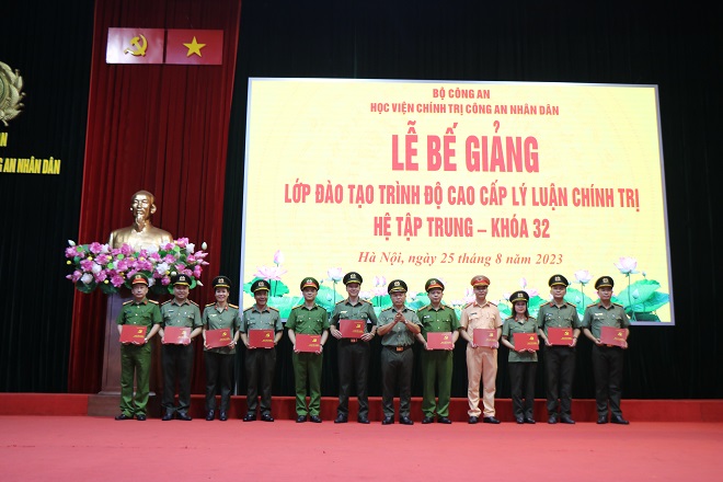 Thực hiện Kế hoạch của Học viện Chính trị CAND về việc tổ chức Lễ bế giảng lớp đào tạo trình độ cao cấp lý luận chính trị, hệ tập trung - Khóa 32 mở tại Học viện Chính trị CAND, chiều ngày 26/8/2023, Học viện tổ chức Lễ bế giảng khoá học. Đồng chí Trung tướng, PGS.TS Phan Xuân Tuy, Bí thư Đảng ủy, Giám đốc Học viện Chính trị CAND dự và chủ trì buổi lễ. Tham dự Lễ bế giảng có đồng chí Thiếu tướng, TS Nguyễn Như Lôi, Phó Giám đốc Học viện Chính trị CAND; lãnh đạo các đơn vị chức năng thuộc Học viện Chính trị CAND cùng toàn thể học viên lớp học.