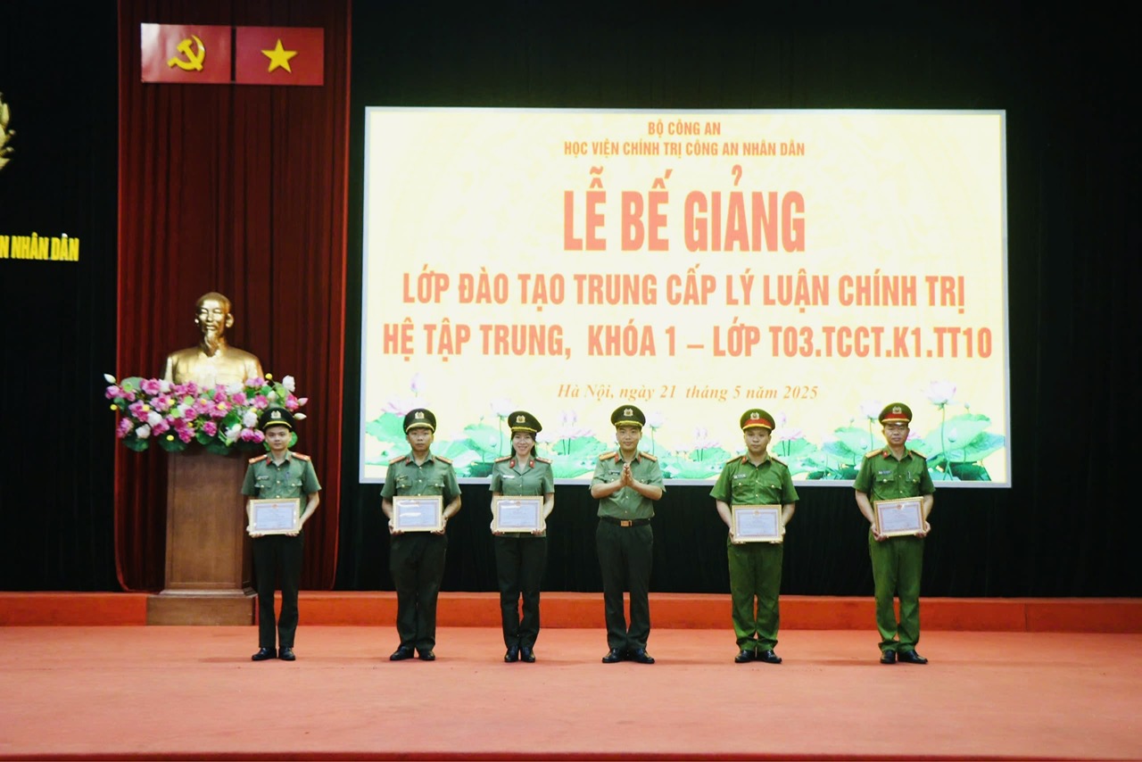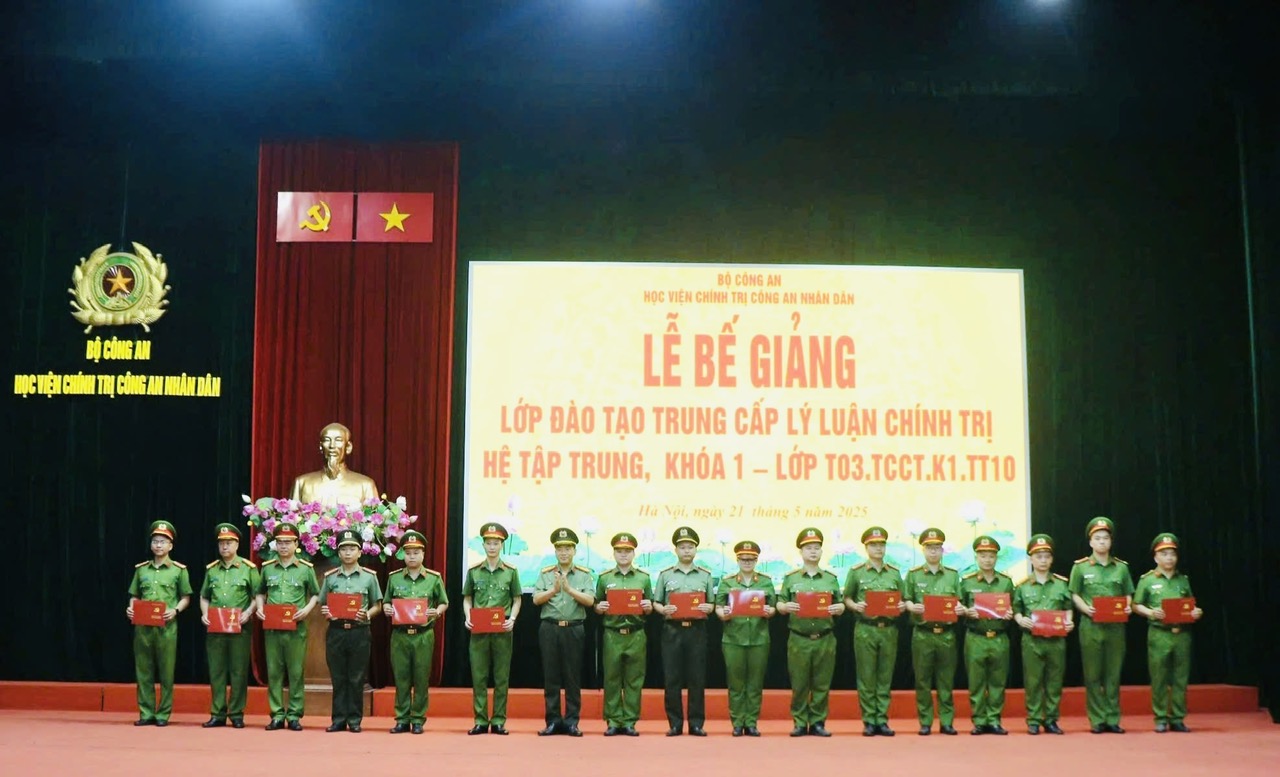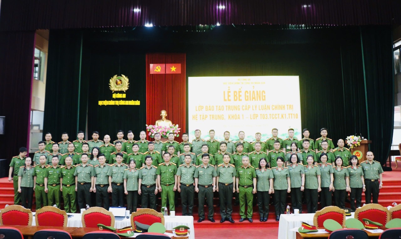 Thực hiện Kế hoạch số 936/KH-T03-P6 ngày 15/5/2025 của Học viện Chính trị CAND về việc tổ chức Lễ Bế giảng lớp đào tạo trung cấp lý luận chính trị, hệ tập trung - Khóa 1 (Lớp T03.CCCT.K1.TT10); sáng ngày 21/5/2025, Học viện tổ chức lễ Bế giảng khoá học. Đồng chí TS, Thượng tá Nguyễn Văn Tuấn, Ủy viên Ban Thường vụ Đảng uỷ, Phó Giám đốc Học viện Chính trị Công an nhân chủ trì buổi lễ; tham dự có đại diện lãnh đạo Cục X02 và đại diện lãnh đạo các đơn vị chức năng thuộc Học viện cùng toàn thể học viên lớp học.