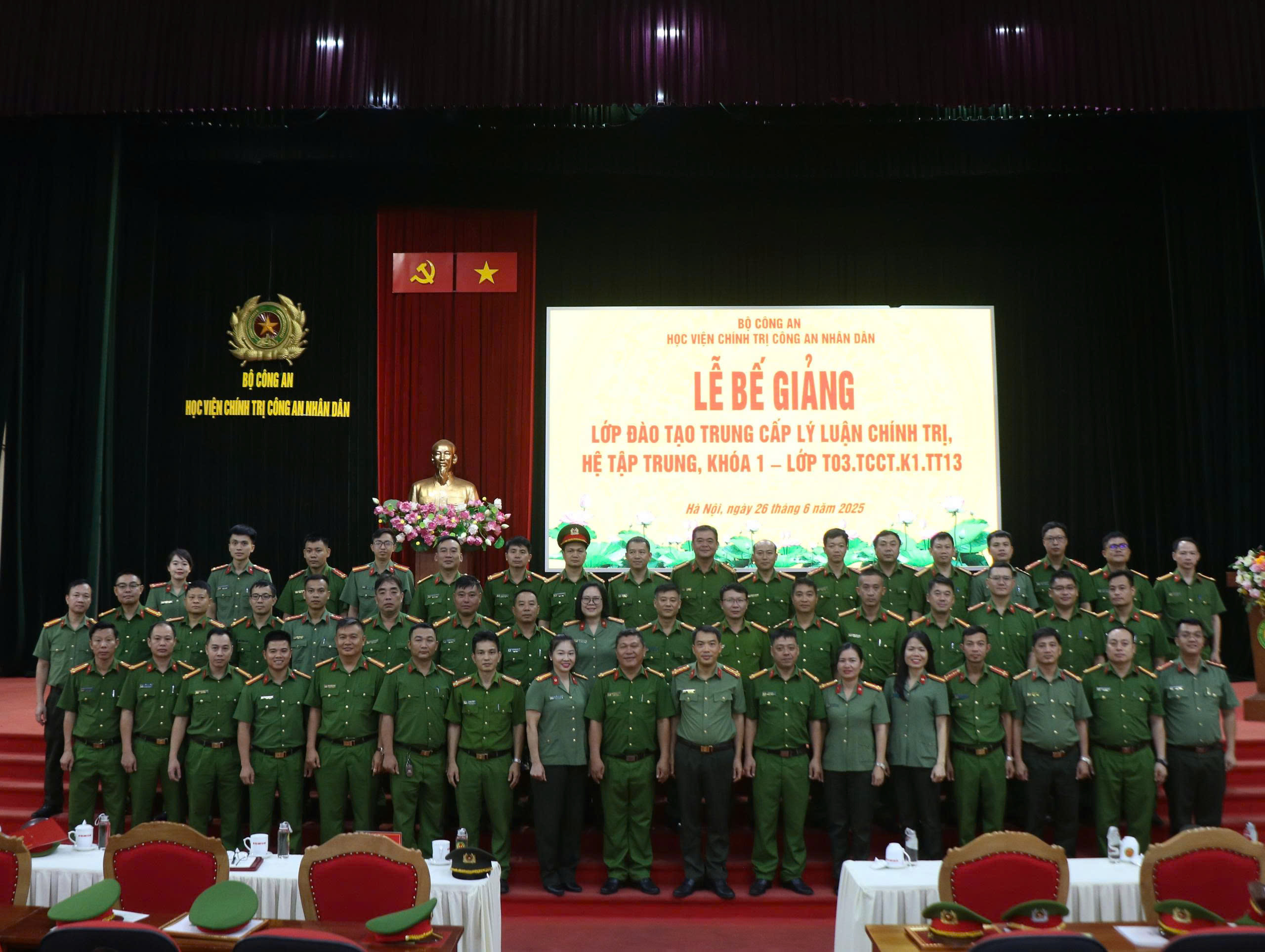 Sáng ngày 26/6/2025, Học viện Chính trị CAND tổ chức lễ Bế giảng Lớp đào tạo trung cấp lý luận chính trị, hệ tập trung - Khóa 1 mở tại Học viện (Lớp T03.CCCT.K1.TT13). Đồng chí TS, Đại tá Nguyễn Văn Tuấn, Ủy viên Ban Thường vụ Đảng ủy, Phó Giám đốc Học viện Chính trị Công an nhân chủ trì buổi lễ. Tham dự lễ bế giảng có đại diện lãnh đạo các đơn vị chức năng thuộc Học viện cùng toàn thể học viên lớp học.