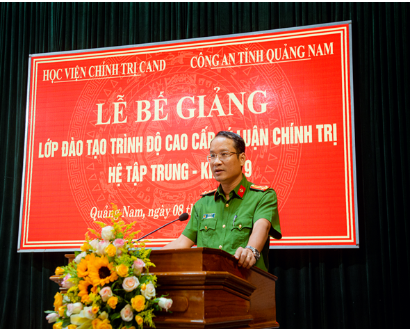Cũng tại buổi Lễ, Thượng tá Hồ Song Ân, Ủy viên Ban Thường vụ Đảng ủy, Phó Giám đốc Công an tỉnh Quảng Nam chúc mừng các học viên đã hoàn thành chương trình khóa học và được cấp bằng tốt nghiệp trình độ cao cấp lý luận chính trị của Học viện Chính trị CAND. Đồng chí cũng tin tưởng rằng với những kiến thức đã được nghiên cứu, học tập, cùng với kinh nghiệm của bản thân, các đồng chí học viên sẽ biến lý luận thành hành động cụ thể để giải quyết các yêu cầu thực tiễn đặt ra ở đơn vị, địa phương mình. Các đồng chí cần phải thể hiện sự nhiệt huyết, bám sát cơ sở, sát dân, vì Nhân dân phục vụ, phải nắm chắc tâm tư, nguyện vọng của Nhân dân, cũng như diễn biến tình hình các loại tội phạm trên địa bàn, tham gia tích cực đấu tranh phản bác các quan điểm, luận điệu sai trái, thù địch, góp phần bảo vệ nền tảng tư tưởng của Đảng. Đồng chí đánh giá đây là khóa học có ý nghĩa đặc biệt quan trọng đối với công tác giáo dục đào tạo, góp phần quan trọng vào việc xây dựng đội ngũ cán bộ Công an nói chung và đội ngũ Công an tỉnh Quảng Nam nói riêng có phẩm chất, năng lực, uy tín ngang tầm yêu cầu, nhiệm vụ, trực tiếp nâng cao trình độ lý luận, bản lĩnh chính trị, chuẩn hóa các chức danh lãnh đạo, chỉ huy cho Công an các đơn vị địa phương và hi vọng rằng trong thời gian tới, Học viện Chính trị Công an nhân dân tiếp tục quan tâm nhiều hơn nữa đối với công tác đào tạo cán bộ cho Công an tỉnh Quảng Nam để thực hiện tốt Nghị quyết số 12 của Bộ Chính trị về đẩy mạnh xây dựng lực lượng CAND thật sự trong sạch, vững mạnh, chính quy, tinh nhuệ, hiện đại, đáp ứng yêu cầu nhiệm vụ trong tình hình mới.