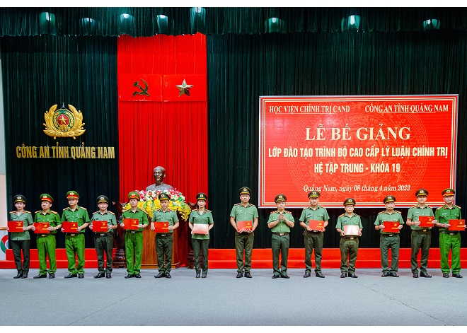 Ngày 08/4/2023, Học viện Chính trị CAND phối hợp với Công an tỉnh Quảng Nam tổ chức Lễ bế giảng Lớp đào tạo trình độ cao cấp lý luận chính trị, hệ tập trung - Khóa 19 mở tại Công an tỉnh Quảng Nam.