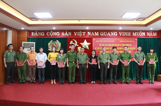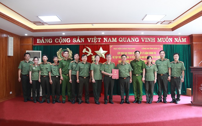 Đoàn cán bộ, học viên lớp CCLLCT khóa 18 Học viện Chính trị CAND tặng quà lưu niệm Công an tỉnh Sơn La và các cán bộ chiến sĩ có hoàn cảnh khó khăn thuộc Công an tỉnh Sơn La