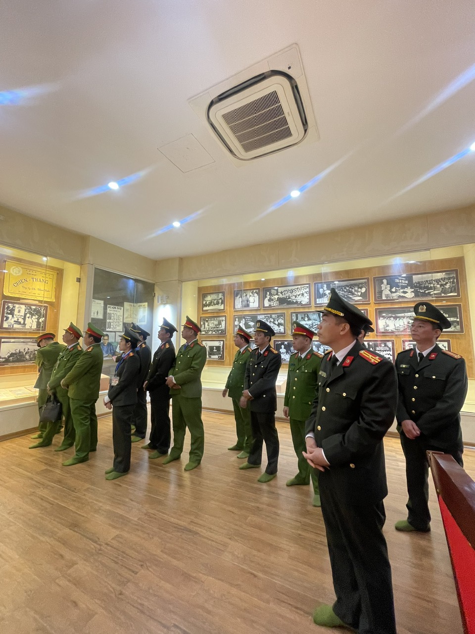 Đoàn Công tác đã tổ chức về nguồn, dâng hương, dâng hoa tưởng nhớ đến công lao to lớn của Chủ tịch Hồ Chí Minh vĩ đại đối với lực lượng Công an nhân dân tại Tượng đài Chủ tịch Hồ Chí Minh, Khu Lưu niệm Sáu điều Bác Hồ dạy Công an nhân dân. Trước anh linh của Người, với tình cảm, lòng tự hào và biết ơn vô hạn đối với Bác Hồ kính yêu, Đoàn Công tác và tập thể học viên lớp đào tạo cao cấp LLCT, hệ không tập trung - Khóa 6 (Lớp T03.CCCT.K6.TT5) xin hứa, phát huy truyền thống anh hùng, đoàn kết một lòng, vượt qua mọi khó khăn, thách thức, quyết tâm thực hiện tốt những lời căn dặn của Bác trước lúc đi xa, thực hiện thắng lợi sự nghiệp đổi mới do Đảng khởi xướng và lãnh đạo; có bản lĩnh chính trị vững vàng, lối sống văn minh; không ngừng học tập để phát huy sáng kiến, nâng cao nghiệp vụ chuyên môn, hoàn thành tốt các nhiệm vụ được giao. Sau lễ dâng hương, Đoàn Công tác đã đi tham quan nhà truyền thống, phòng tưởng niệm Chủ tịch Hồ Chí Minh và nhà trưng bày lưu niệm Sáu điều Bác Hồ dạy Công an nhân. Khu lưu niệm Sáu điều Bác Hồ dạy Công an nhân dân toạ lạc tại tổ dân phố Chùa Nguộn, thị trấn Nhã Nam, huyện Tân Yên tỉnh Bắc Giang, đây là Khu di tích lịch sử có ý nghĩa đặc biệt - là địa chỉ đỏ trong giáo dục truyền thống cách mạng với lực lượng Công an nhân dân nói riêng, thế hệ trẻ và các tầng lớp nhân dân nói chung.