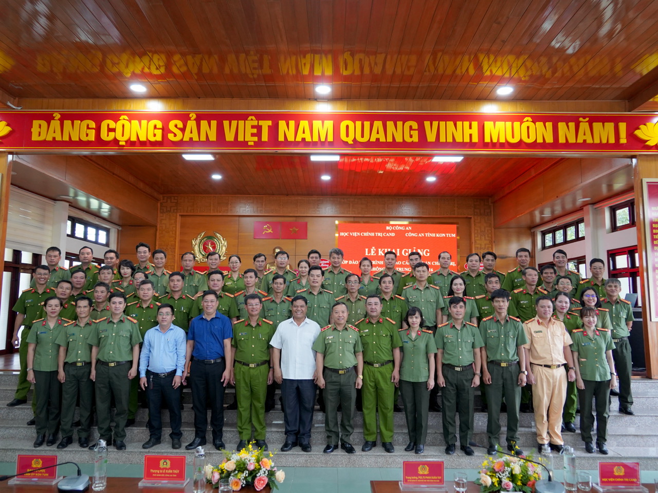 Thực hiện chỉ tiêu đào tạo, bồi dưỡng cán bộ CAND năm học 2022 – 2023, ngày 04/8/2023, Học viện Chính trị CAND đã phối hợp với Công an tỉnh Kon Tum tổ chức khai giảng lớp đào tạo cao cấp lý luận chính trị hệ không tập trung khóa 16 tổ chức tại Công an tỉnh. Đồng chí Trung tướng, PGS.TS Phan Xuân Tuy, Bí thư Đảng ủy, Giám đốc Học viện Chính trị CAND dự và chủ trì lễ khai giảng. Tham dự lễ Khai giảng, về phía tỉnh Kon Tum có: đồng chí Thượng tá, Tiến sĩ Lê Xuân Thủy, Ủy viên Ban Thường vụ Đảng ủy, Phó Giám đốc Công an tỉnh; đồng chí Thao Hồng Sơn, Tỉnh ủy viên, Phó Trưởng ban Thường trực Ban Tổ chức Tỉnh ủy; đồng chí Nguyễn Quang Thủy, Phó Trưởng ban Tuyên giáo Tỉnh ủy; đồng chí Nguyễn Thọ Hòa, Phó Hiệu trưởng Trường Chính trị tỉnh Kon Tum; đại diện lãnh đạo các đơn vị chức năng của Học viện Chính trị CAND, Công an tỉnh Kon Tum và học viên lớp học.