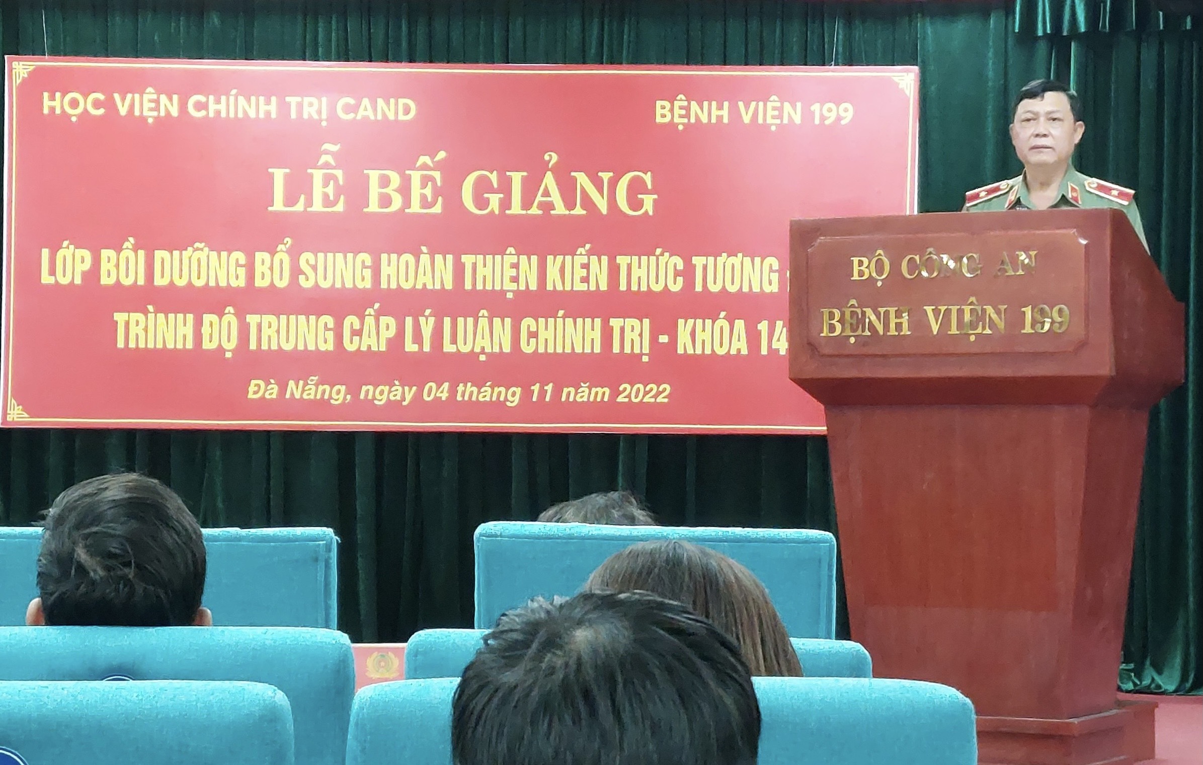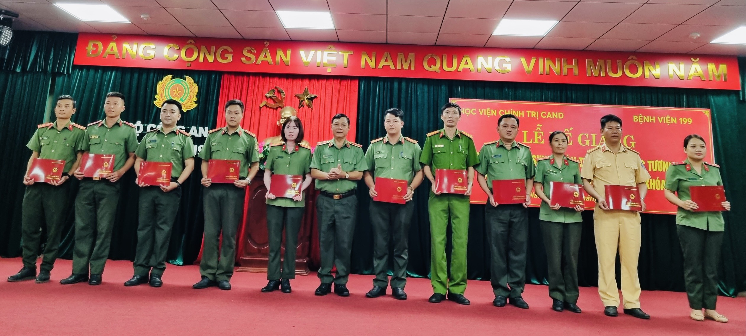 Lễ bế giảng lớp bồi dưỡng bổ sung hoàn thiện kiến thức tương đương trình độ Trung cấp lý luận chính trị, Khóa 145 mở tại Bệnh viện 199 đã diễn ra thành công tốt đẹp. Hy vọng rằng, khi trở về công tác tại Công an các đơn vị, địa phương, học viên sẽ vận dụng tốt các kiến thức đã được học vào thực tiễn nhằm đáp ứng yêu cầu nhiệm vụ chính trị trong tình hình mới, góp phần vào công tác xây dựng Đảng, xây dựng lực lượng Công an nhân dân theo tinh thần của Nghị quyết số 12-NQ/TW, ngày 16/3/2022 của Bộ Chính trị về “Đẩy mạnh xây dựng lực lượng CAND thật sự trong sạch, vững mạnh, chính quy, tinh nhuệ, hiện đại, đáp ứng yêu cầu, nhiệm vụ trong tình hình mới”./.