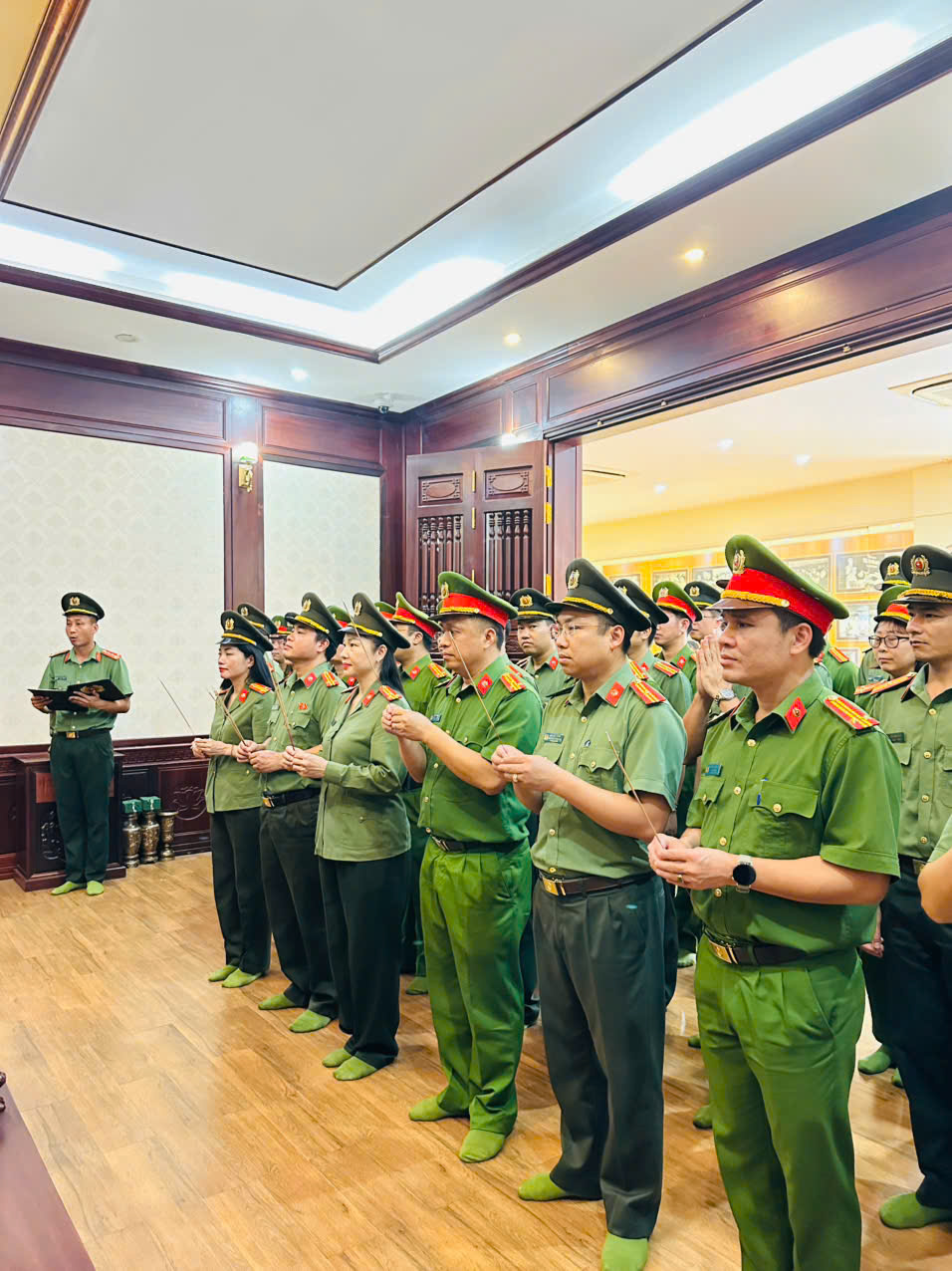 Trước anh linh Chủ tịch Hồ Chí Minh, Đoàn công tác thành kính tưởng nhớ và bày tỏ lòng biết ơn vô hạn Chủ tịch Hồ Chí Minh vĩ đại - Người sáng lập, chăm lo xây dựng, giáo dục, rèn luyện lực lượng CAND Việt Nam Anh hùng; kính cẩn nghiêng mình tưởng nhớ các Anh hùng liệt sỹ, đồng bào, đồng chí đã anh dũng chiến đấu, hy sinh vì độc lập, tự do của Tổ quốc, vì bình yên, hạnh phúc của nhân dân; đồng thời Luôn ghi lòng tạc dạ những lời dạy của Bác; đoàn kết hăng hái thi đua rèn đức, luyện tài, trung thành với sự nghiệp cách mạng của Đảng; quyết tâm hoàn thành tốt nhiệm vụ được giao, dám nghĩ, dám làm, dám chịu trách nhiệm; đổi mới và nâng cao hiệu quả các mặt công tác đáp ứng tốt yêu cầu nhiệm vụ bảo đảm an ninh, trật tự trong tình hình mới; xây dựng đơn vị thực sự vững mạnh, xuất sắc, toàn diện.
