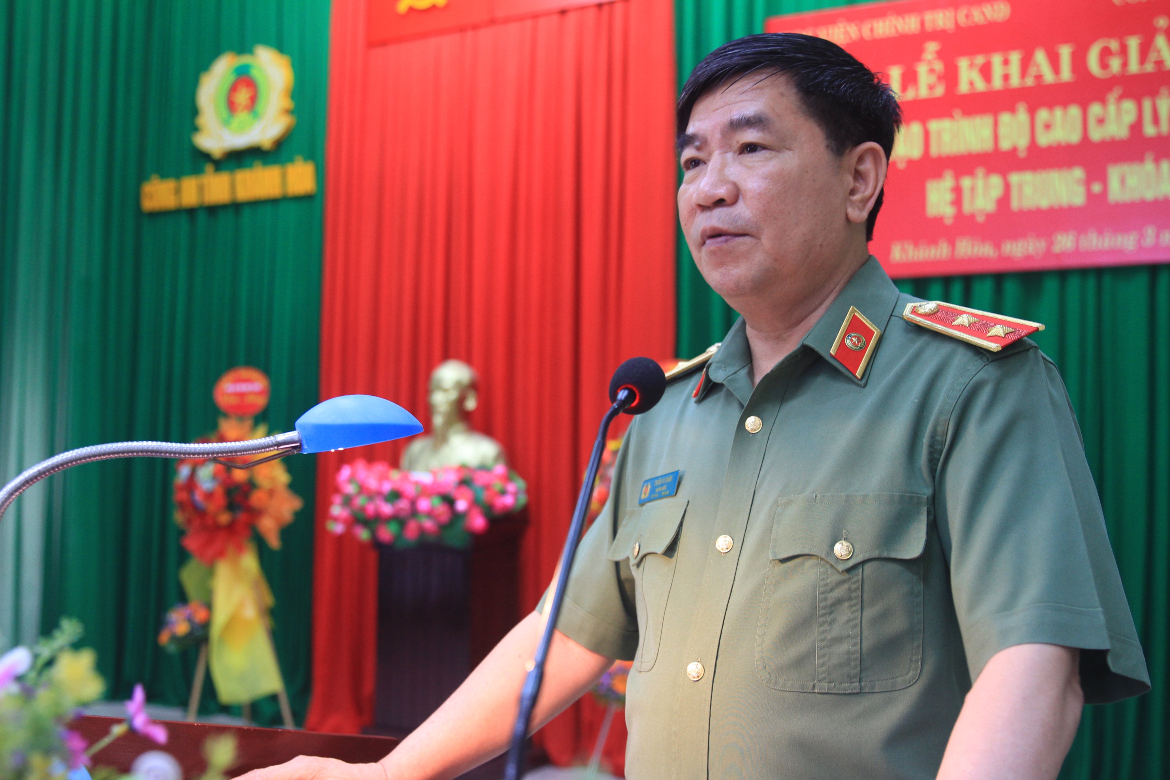 Đ/c Đại tá Nguyễn Văn Ngàn, Phó Bí thư Đảng ủy, Phó Giám đốc Công an tỉnh Khánh Hòa phát biểu tại Lễ Khai giảng