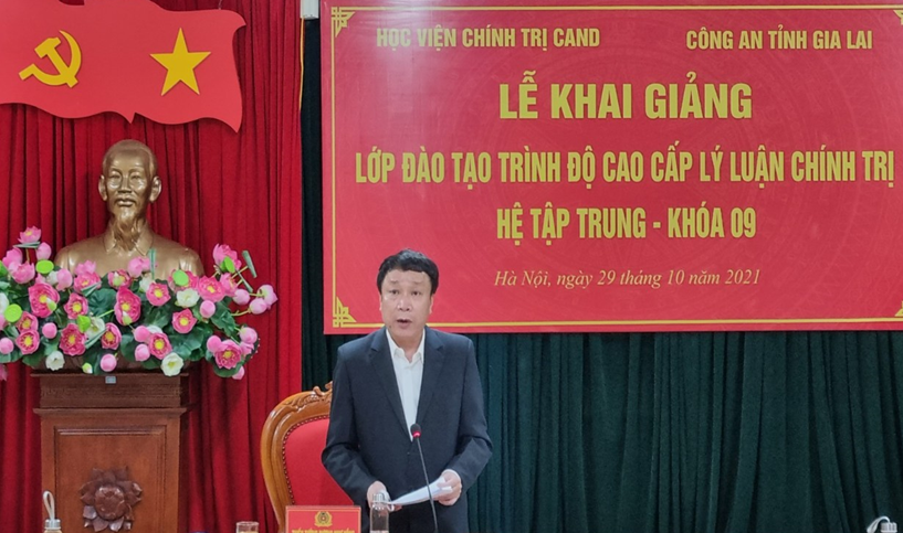 Ngày 29/10/2021, Học viện Chính trị Công an nhân dân phối hợp với Công an tỉnh Gia Lai tổ chức Lễ Khai giảng Lớp Đào tạo cao cấp lý luận chính trị hệ tập trung khóa 9 theo hình thức trực tuyến cho 50 đồng chí là lãnh đạo, chỉ huy các đơn vị đang công tác tại Công an tỉnh Gia Lai, Phú Yên và Đắk Lắk.