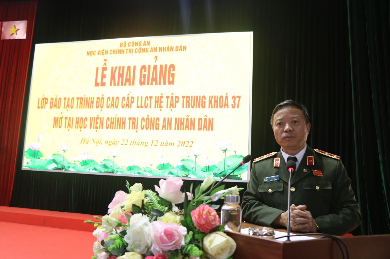 Chiều ngày 22/12/2022, Học viện Chính trị Công an nhân dân tổ chức Lễ khai giảng Lớp đào tạo trình độ cao cấp lý luận chính trị hệ tập trung khóa 37 mở tại Học viện. Đồng chí Trung tướng, PGS.TS Phan Xuân Tuy, Bí thư Đảng ủy, Giám đốc Học viện Chính trị CAND chủ trì buổi Lễ. Tham dự có: đại diện lãnh đạo các đơn vị chức năng thuộc Học viện Chính trị CAND cùng toàn thể học viên lớp học.