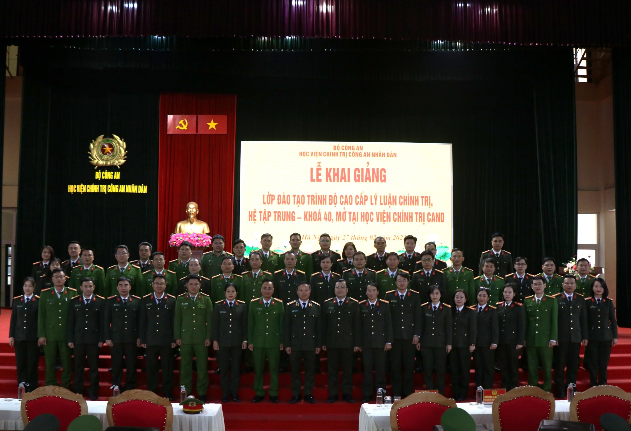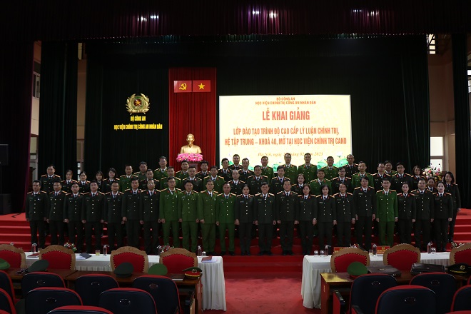 Sáng ngày 27/02/2023, Học viện Chính trị Công an nhân dân tổ chức Lễ khai giảng Lớp đào tạo trình độ cao cấp lý luận chính trị hệ tập trung khóa 40 mở tại Học viện Chính trị CAND. Đồng chí Trung tướng, PGS.TS Phan Xuân Tuy, Bí thư Đảng ủy, Giám đốc Học viện dự và phát biểu chỉ đạo; đồng chí Thiếu tướng, TS Nguyễn Như Lôi, Uỷ viên Ban Thường vụ Đảng ủy, Phó Giám đốc Học viện Chính trị CAND chủ trì buổi Lễ. Tham dự có: đại diện lãnh đạo các đơn vị chức năng thuộc Học viện Chính trị CAND cùng toàn thể học viên lớp học.