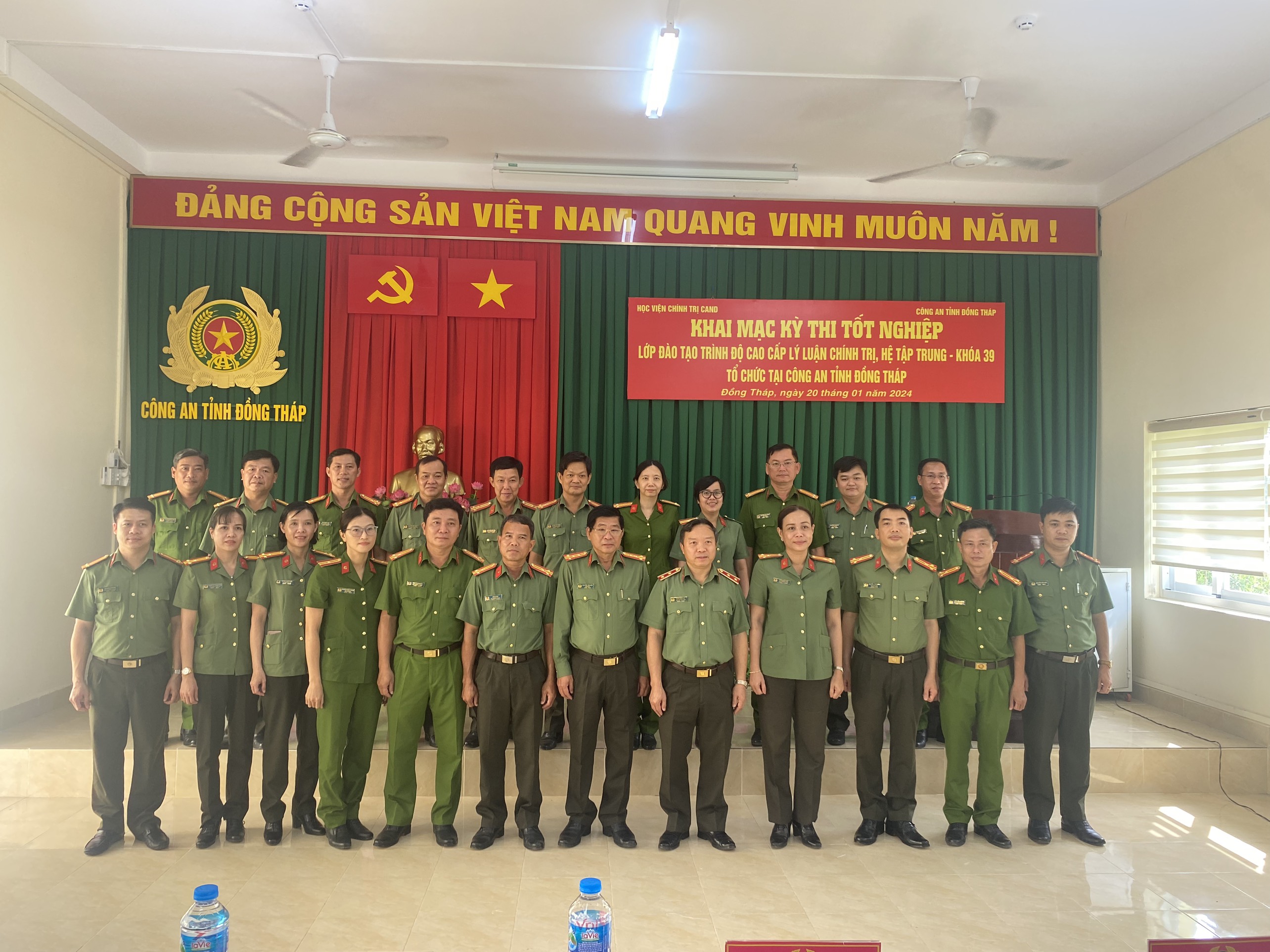 Công an tỉnh Đồng Tháp đã chuẩn bị chu đáo các điều kiện về cơ sở vật chất, các điều kiện cần thiết phục vụ kỳ thi tốt nghiệp diễn ra đúng theo Kế hoạch của Học viện Chính trị CAND. Đồng thời, đề nghị học viên lớp học chấp hành nghiêm túc quy chế đào tạo của Bộ Công an và của Học viện Chính trị CAND, chúc các học viên hoàn thành tốt các bài thi của mình và đạt được kết quả cao nhất.