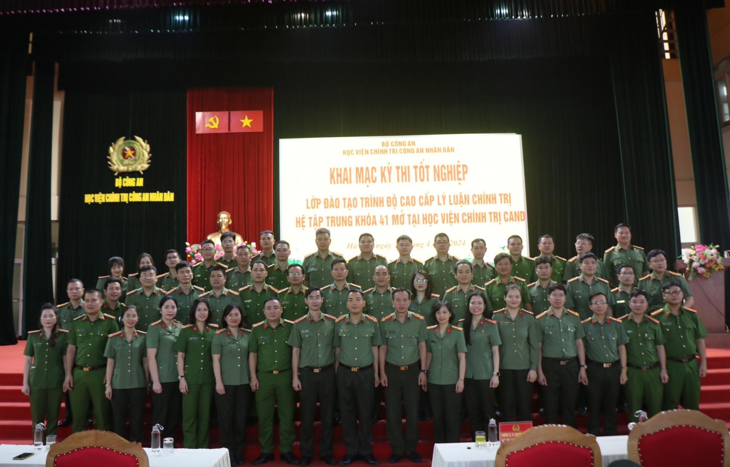 Thực hiện Kế hoạch số 575/KH-T03-P3, ngày 05/4/2024 của Học viện Chính trị CAND về việc tổ chức thi tốt nghiệp cho lớp đào tạo trình độ cao cấp lý luận chính trị, hệ tập trung - khóa 41; sáng ngày 16/4/2024, Học viện tổ chức Lễ Khai mạc kỳ thi tốt nghiệp cho học viên lớp học. Đồng chí Thượng tá, TS Nguyễn Văn Tuấn, Ủy viên Ban Thường vụ Đảng ủy, Phó Giám đốc Học viện Chính trị CAND, Phó Chủ tịch Hội đồng thi chủ trì buổi lễ. Tham dự buổi lễ có các đồng chí đại diện lãnh đạo các đơn vị chức năng thuộc Học viện Chính trị CAND; các ban giúp việc của Hội đồng thi cùng toàn thể học viên lớp học.