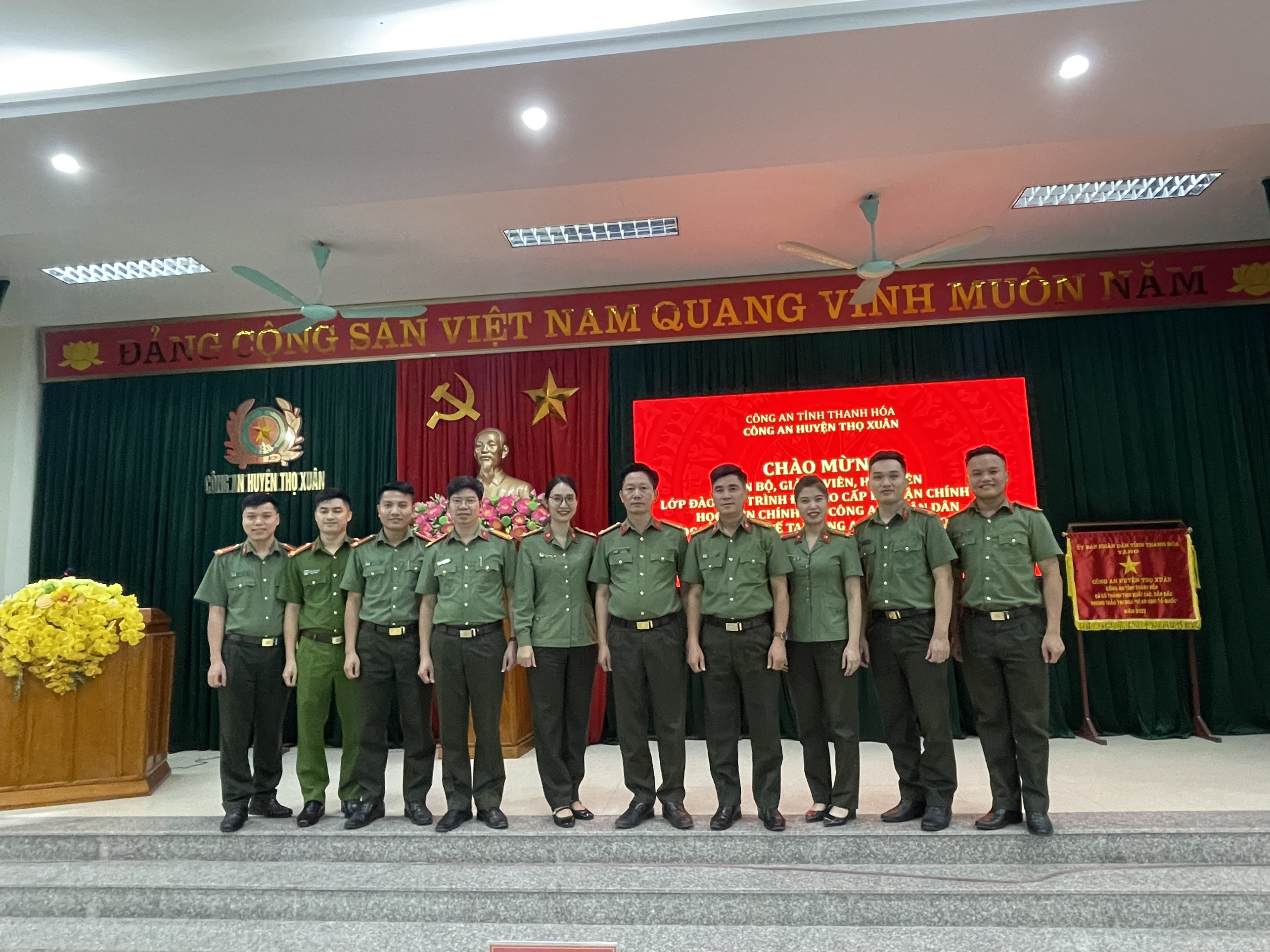 Thực hiện chương trình học tập của lớp đào tạo trình độ Cao cấp lý luận chính trị khóa 12, hệ không tập trung mở tại Học viện Chính trị Công an nhân dân về việc tổ chức học tập ngoại khóa và được sự đồng ý của Ban Giám đốc Học viện, ngày 21/10/2023, Khoa Luật đã tổ chức buổi học tập ngoại khóa với nội dung: “Vai trò của lực lượng Công an nhân dân trong công tác bảo đảm an ninh, trật tự, phòng, chống tham nhũng, tiêu cực gắn với xây dựng chính quyền địa phương và tăng cường pháp chế xã hội chủ nghĩa từ thực tiễn tại huyện Thọ Xuân, tỉnh Thanh Hóa” cho học viên lớp học.