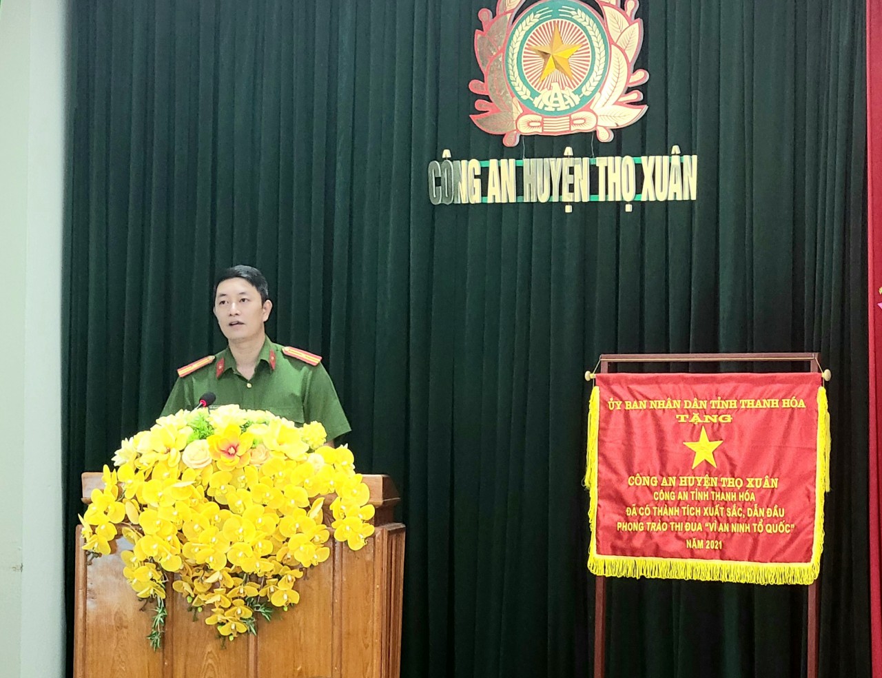 Thượng tá Trịnh Duy Niệm, Bí thư Đảng ủy, Trưởng Công an huyện Thọ Xuân phát biểu