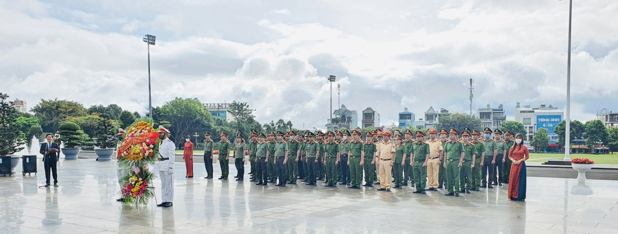 Đoàn công tác dâng hoa tại Quảng trường Đại Đoàn Kết