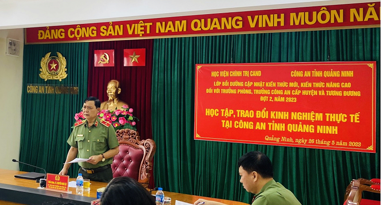 Ngày 26/5/2023, Học viện Chính trị Công an nhân dân tổ chức cho học viên Lớp Bồi dưỡng cập nhật kiến thức mới, kiến thức nâng cao đối với Trưởng phòng, Trưởng Công an cấp huyện và tương đương, đợt 2, năm 2023 đi học tập, trao đổi kinh nghiệm thực tế tại Công an tỉnh Quảng Ninh. Được sự phân công của đồng chí Giám đốc Học viện, đồng chí Thiếu tướng, TS Nguyễn Như Lôi, Ủy viên Ban Thường vụ Đảng ủy, Phó Giám đốc Học viện Chính trị Công an nhân dân làm Trưởng đoàn Đoàn công tác. Tham gia Đoàn còn có đại diện lãnh đạo Phòng Quản lý đào tạo và bồi dưỡng nâng cao, Phòng Quản lý học viên cùng toàn thể học viên của lớp bồi dưỡng.