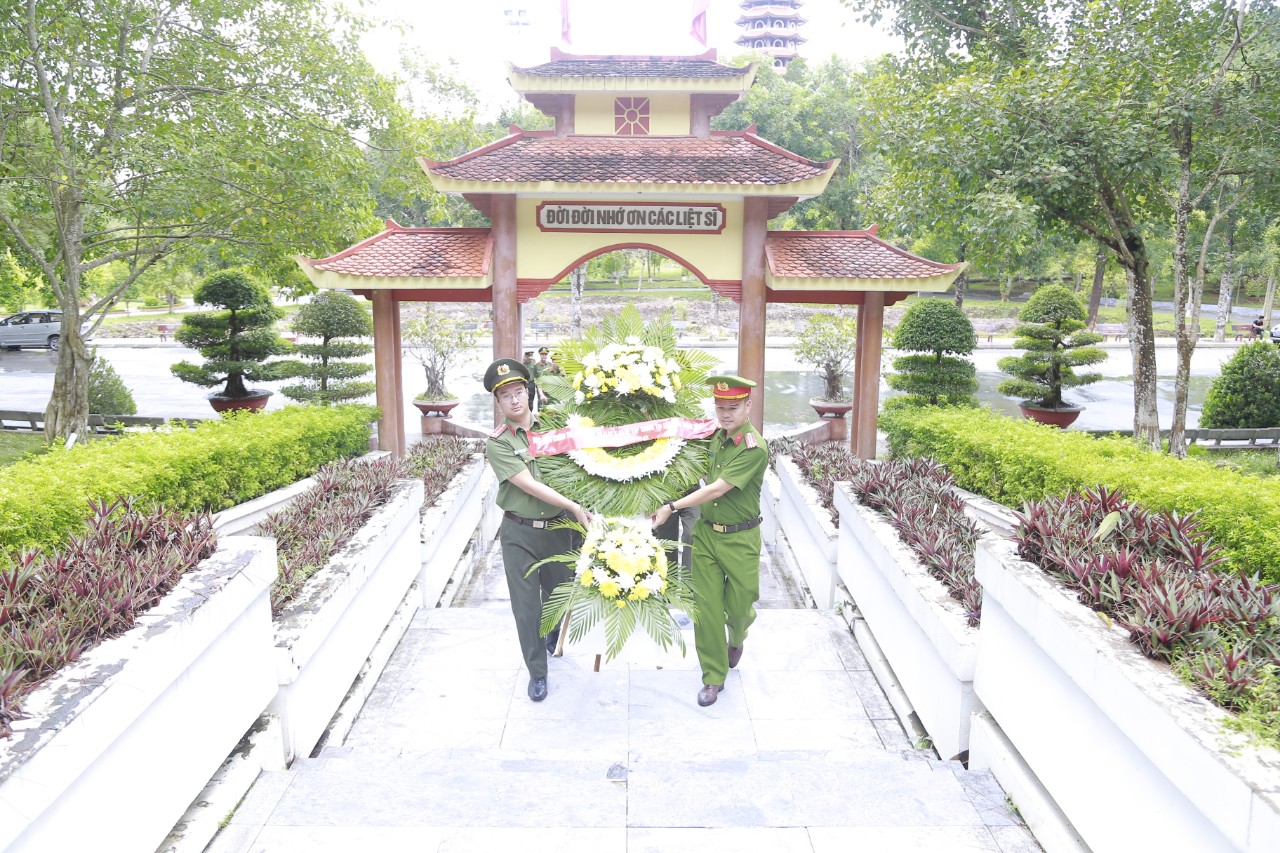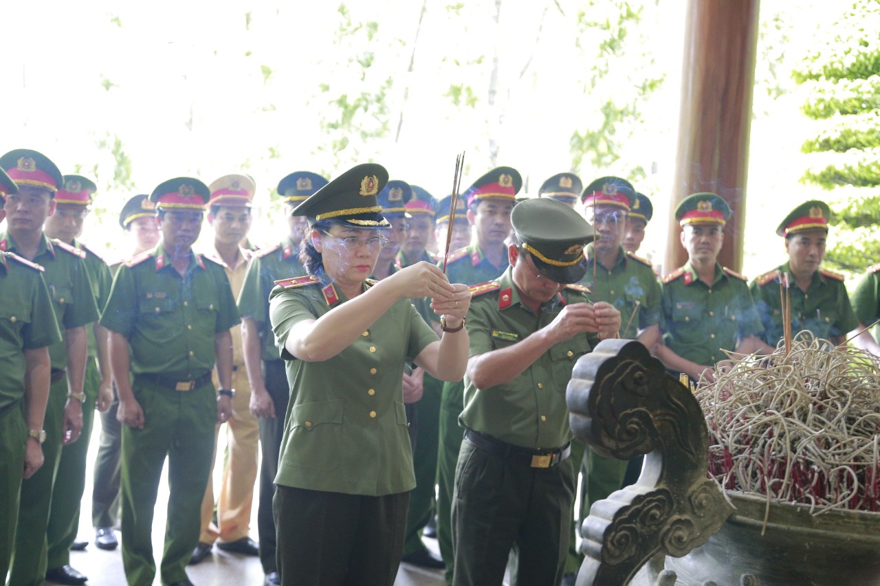 Chiều cùng ngày, Đoàn công tác do đồng chí Thiếu tướng, PGS. TS Đinh Ngọc Hoa, Phó Bí Thư Đảng ủy, Phó Giám đốc Học viện làm trưởng đoàn đã tổ chức dâng hương, đặt vòng hoa tại Khu di tích Ngã ba Đồng Lộc, tham dự cùng đoàn công tác có đồng chí Đại tá Phạm Thanh Phương, Phó Bí thư Đảng ủy, Phó Giám đốc Công an tỉnh Hà Tĩnh. Tại đây, trước anh linh các anh hùng, liệt sỹ Đoàn đã dâng hương, đặt vòng hoa, kính cẩn nghiêng mình tỏ lòng thành kính, biết ơn vô hạn trước sự hy sinh anh dũng của các anh hùng liệt sĩ, thanh niên xung phong trên cung đường huyền thoại Đồng Lộc trong sự nghiệp giải phóng dân tộc. Tiếp đó, Đoàn công tác đến dâng hương, dâng hoa tại khu tưởng niệm 10 cô gái thanh niên xung phong hy sinh khi họ mới mười tám, đôi mươi. Với tinh thần xả thân quên mình, hiên ngang trước mưa bom, bão đạn, các chị chính là biểu tượng của truyền thống chống giặc ngoại xâm của dân tộc Việt Nam anh hùng.