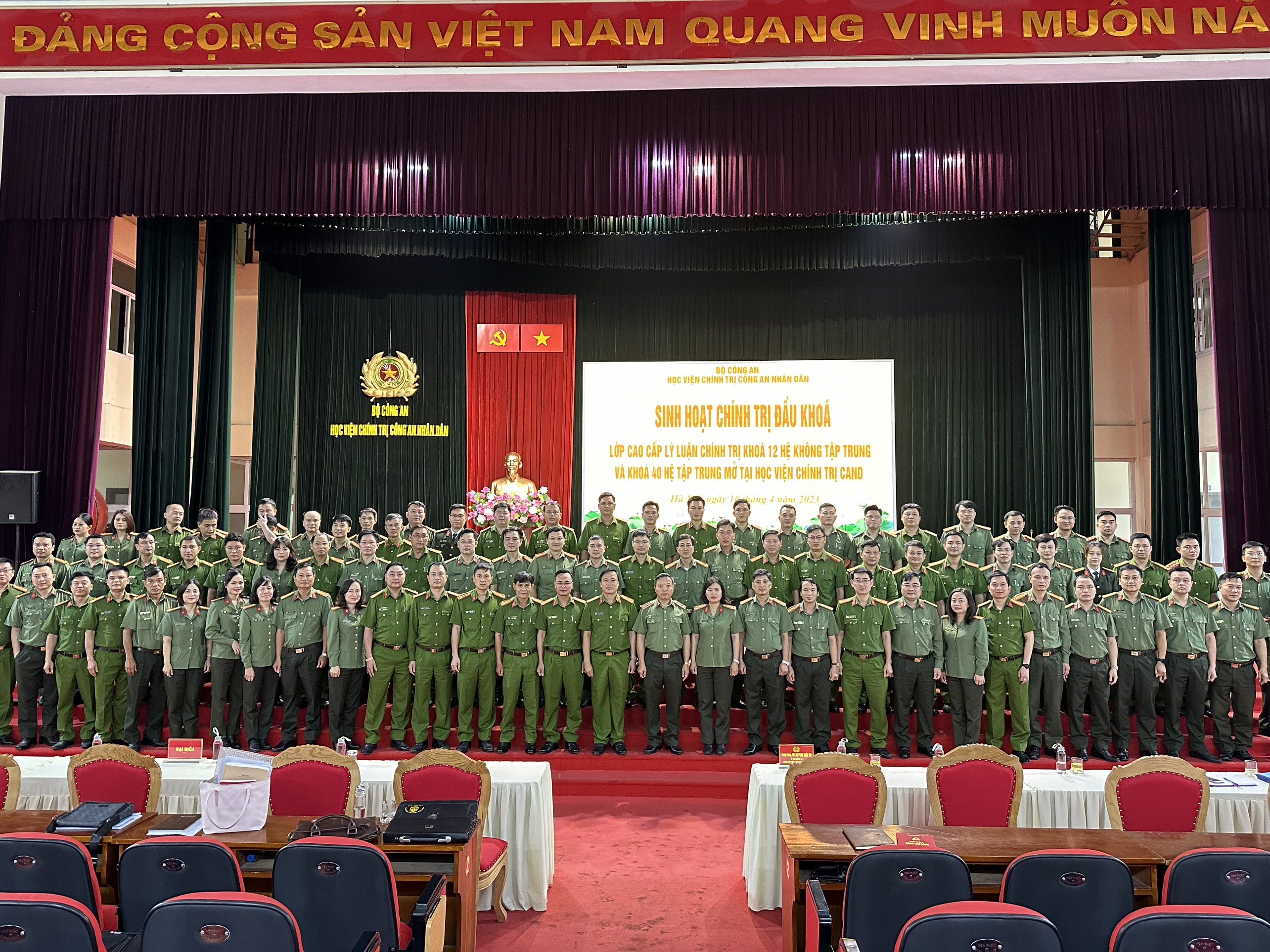 Sáng ngày 10/4/2023, Học viện Chính trị CAND đã tổ chức buổi sinh hoạt chính trị đầu khóa cho học viên lớp Cao cấp lý luận chính trị Khóa 12, hệ không tập trung và Khóa 40, hệ tập trung mở tại Học viện.