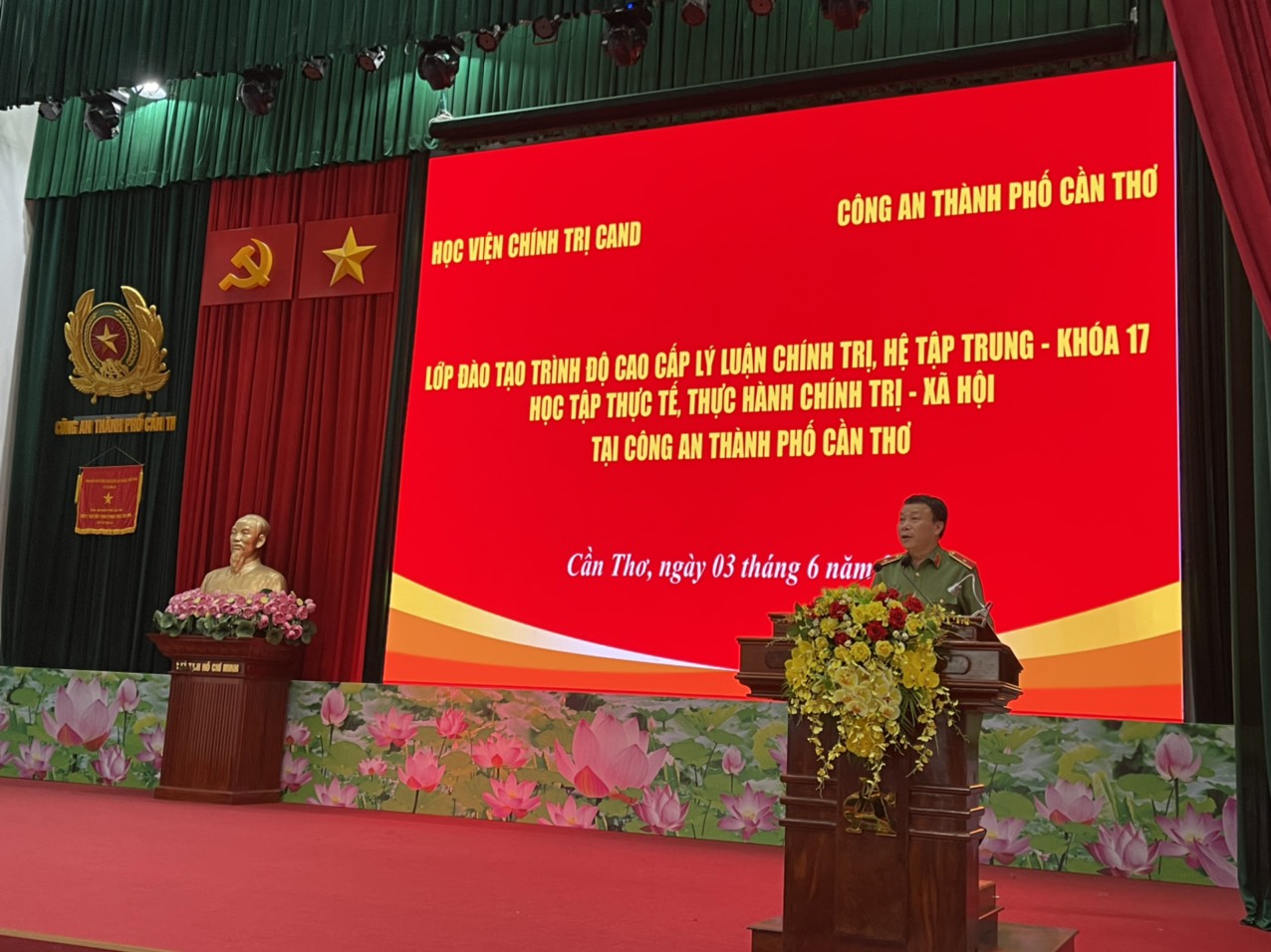 Từ ngày 03/6 đến ngày 07/6, Học viện Chính trị Công an nhân dân tổ chức cho học viên lớp đào tạo trình độ cao cấp lý luận chính trị, hệ tập trung - Khóa 17 mở tại Công an tỉnh Thái Nguyên đi học tập thực tế, thực hành chính trị - xã hội tại Công an Thành phố Cần Thơ. Đồng chí Thiếu tướng Dương Như Hồng, Phó Giám đốc Học viện làm Trưởng đoàn. Tham gia Đoàn còn có đại diện lãnh đạo Phòng Quản lý đào tạo và bồi dưỡng nâng cao và toàn thể học viên của lớp học.