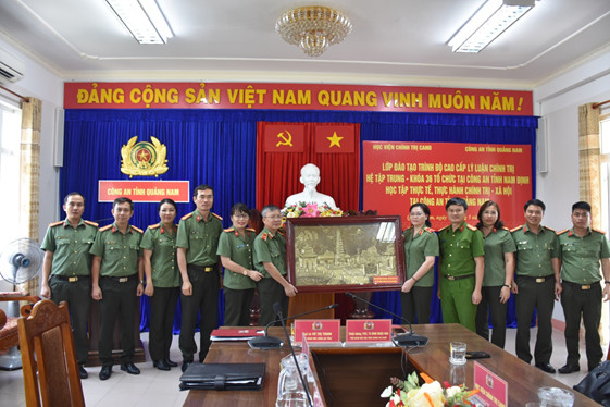 Đoàn công tác của Học viện và học viên lớp học tặng quà lưu niệm Công an tỉnh Quảng Nam