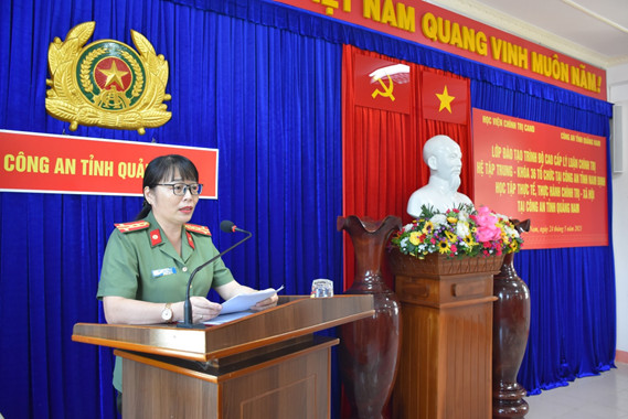 Tiếp đó, đồng chí Đại tá Võ Thị Trinh, Ủy viên Ban Thường vụ Đảng ủy, Phó Giám đốc Công an tỉnh đã giới thiệu khái quát những nét cơ bản về lịch sử, truyền thống, con người của vùng đất Quảng Nam; điều hành phần trao đổi, học tập thực tế của lãnh đạo các đơn vị chức năng trong Công an tỉnh và học viên lớp học.