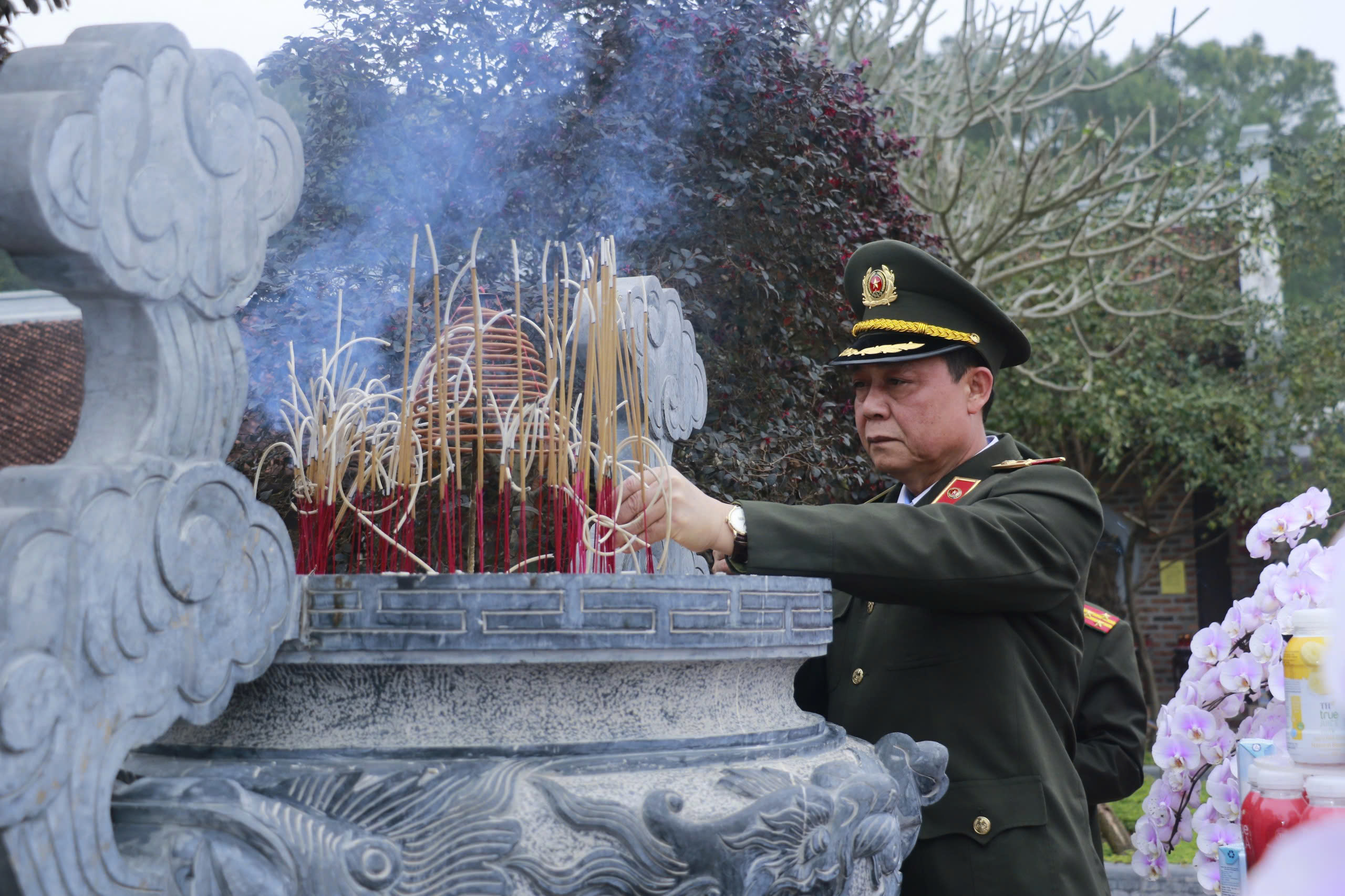 Đồng chí Trung tướng, PGS.TS.NGƯT, Phan Xuân Tuy, Bí thư Đảng ủy, Giám đốc Học viện dâng hương tại Đền thờ cố Bộ trưởng Trần Quốc Hoàn