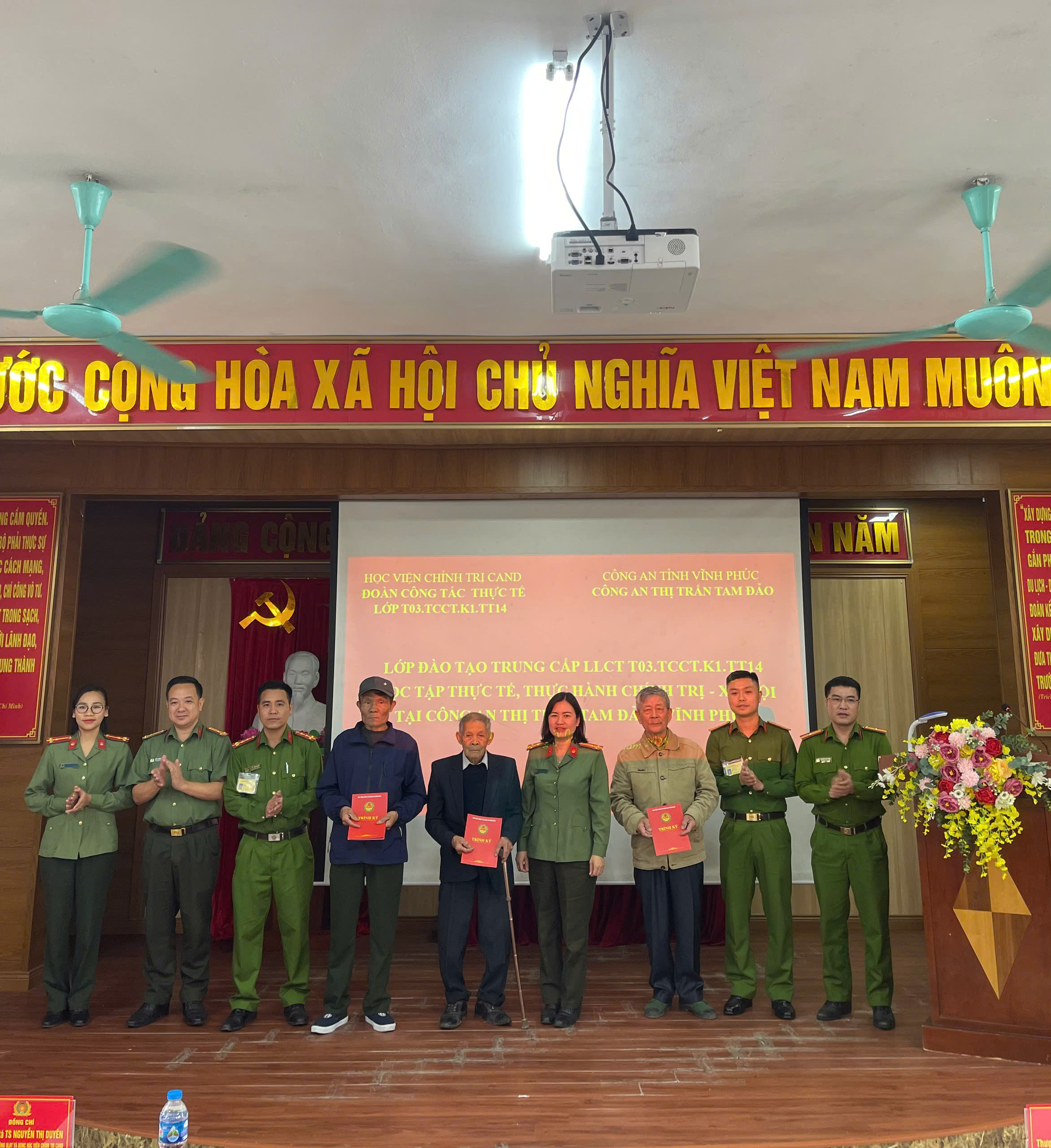 Nhân đợt học tập thực tế, thực hành chính trị - xã hội, Đoàn Công tác của Học viện trao 03 suất quà cho các hộ gia đình chính sách, gia đình có hoàn cảnh khó khăn trên địa bàn thị trấn Tam Đảo, tỉnh Vĩnh Phúc. Đây là hoạt động mang ý nghĩa nhân văn, được Học viện Chính trị CAND tổ chức thường xuyên gắn với các đợt học tập thực tế, thực hành chính trị - xã hội của học viên các lớp học, hệ học, đã để lại những tình cảm tốt đẹp với địa phương nơi Đoàn Công tác của Học viện đến thăm và làm việc.