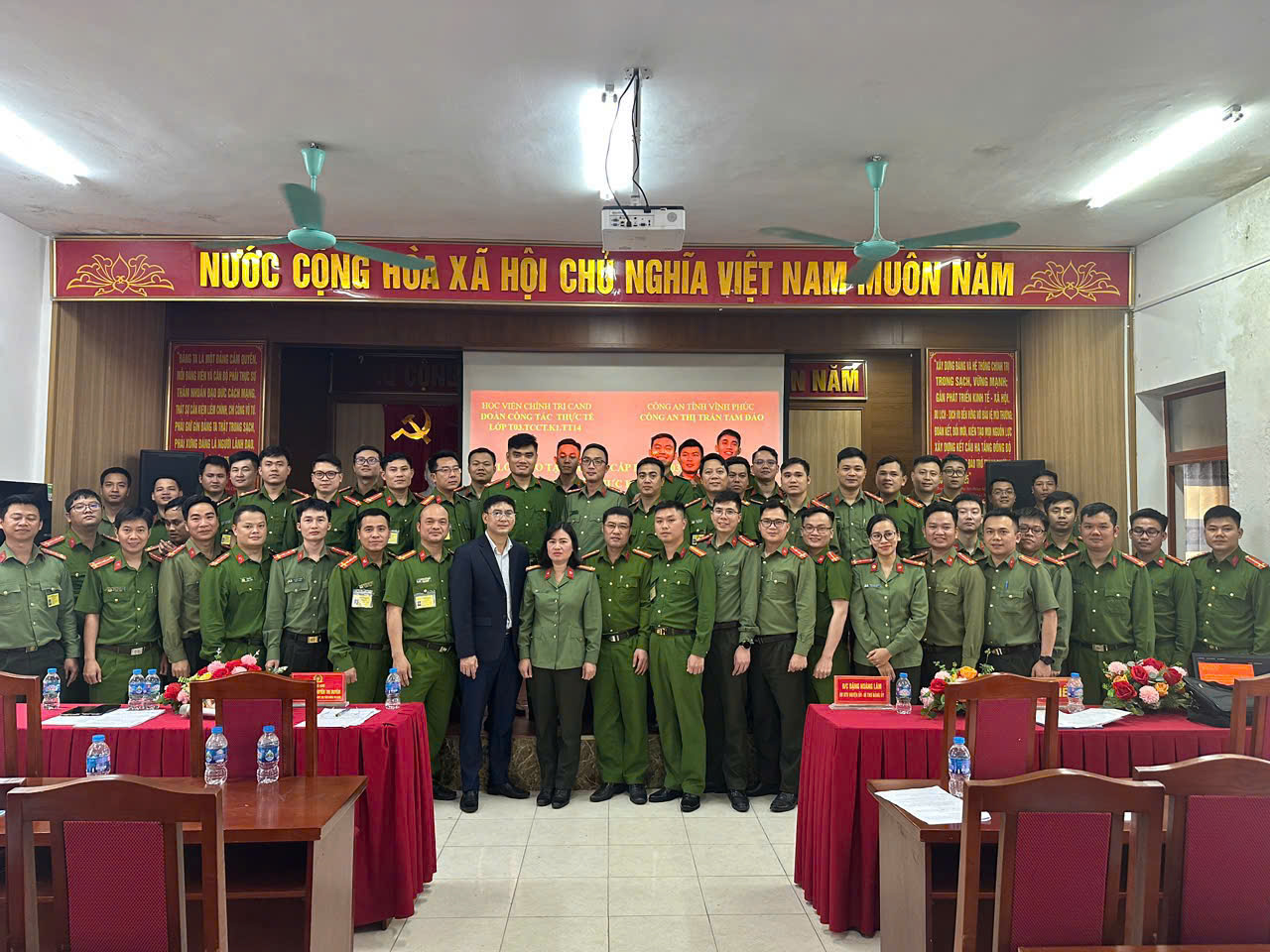 Theo kế hoạch, chiều ngày 09/4/2025, học viên lớp học đã tham gia buổi học tập thực tế, trao đổi kinh nghiệm tại Công an thị trấn Tam Đảo, tỉnh Vĩnh Phúc. Tham dự buổi làm việc, về phía Học viện Chính trị CAND có đại diện lãnh đạo Phòng Quản lý đào tạo và bồi dưỡng nâng cao; giáo viên chủ nhiệm và 49 học viên lớp học. Về phía Công an tỉnh Vĩnh Phúc và Công an thị trấn Tam Đảo, có đồng chí Thượng tá Bùi Thanh Tùng, Phó Trưởng phòng PX01; đồng chí Thiếu tá Nghiêm Xuân Thịnh, Phó Trưởng Công an thị trấn Tam Đảo và các đồng chí cán bộ Công an thị trấn Tam Đảo. Về phía chính quyền địa phương, có đồng chí Đặng Hoàng Lâm, Bí thư Đảng ủy Thị trấn Tam Đảo.