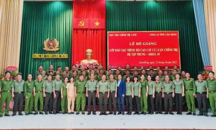 Bế giảng Lớp Cao cấp lý luận chính trị, hệ tập trung - Khóa 10 mở tại Công an tỉnh Lâm Đồng